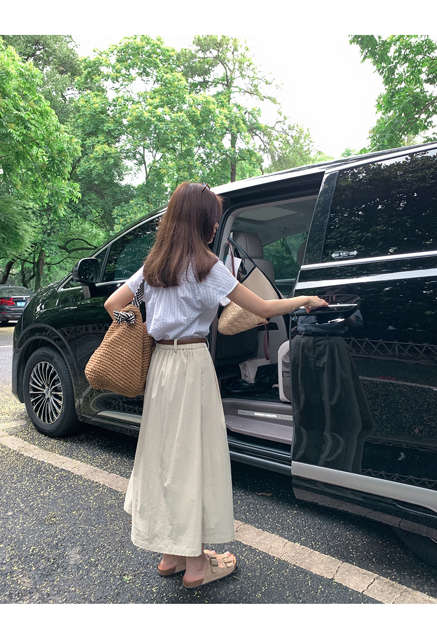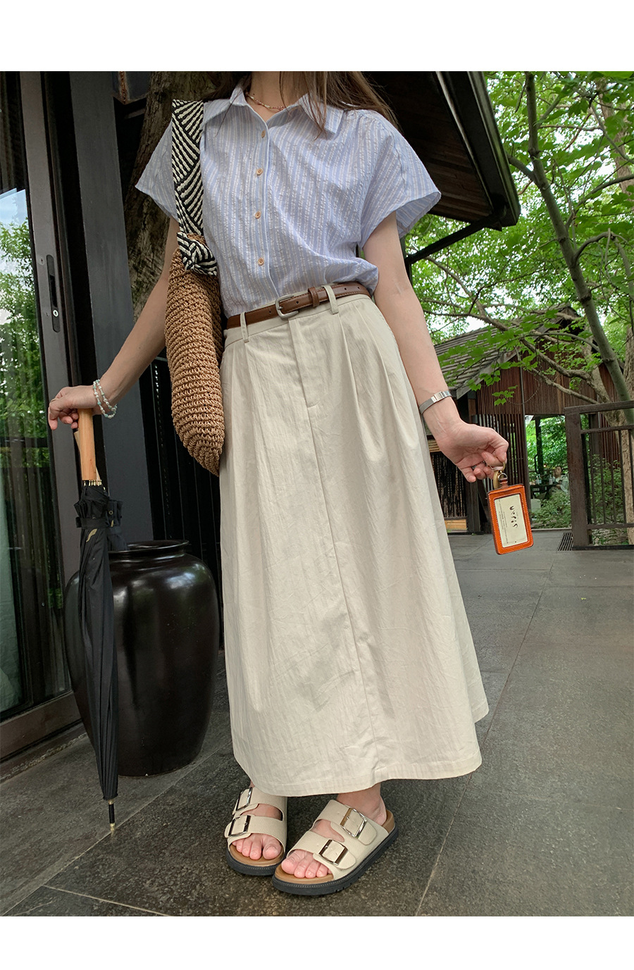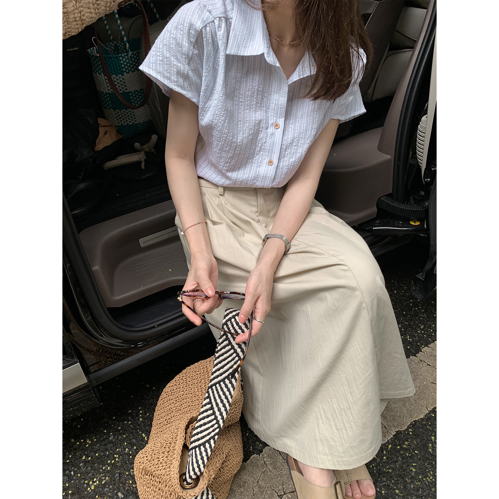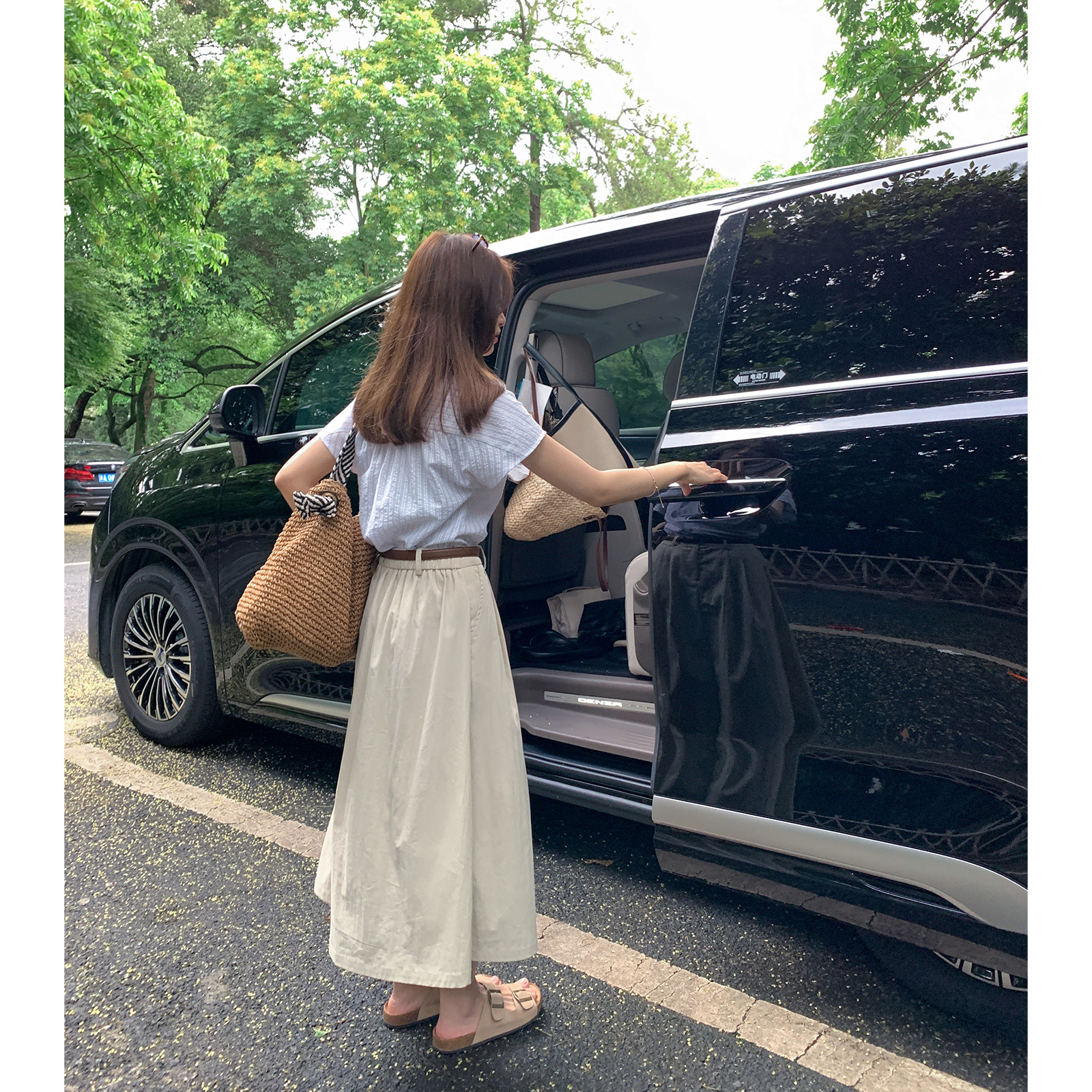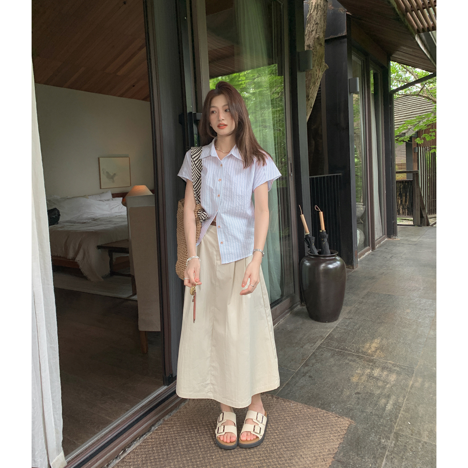 西西里安 通勤bi备单品~奶油杏大摆半身裙女小个子基础百搭a字裙