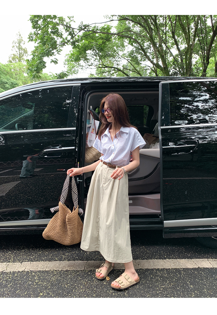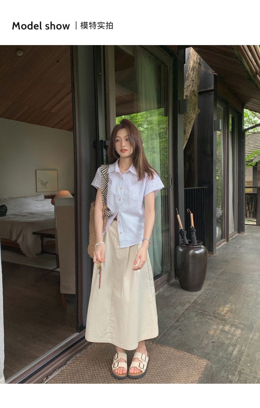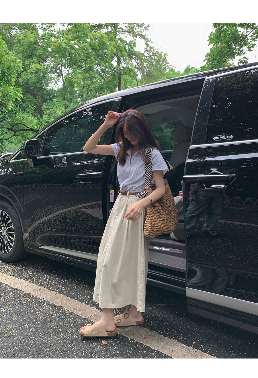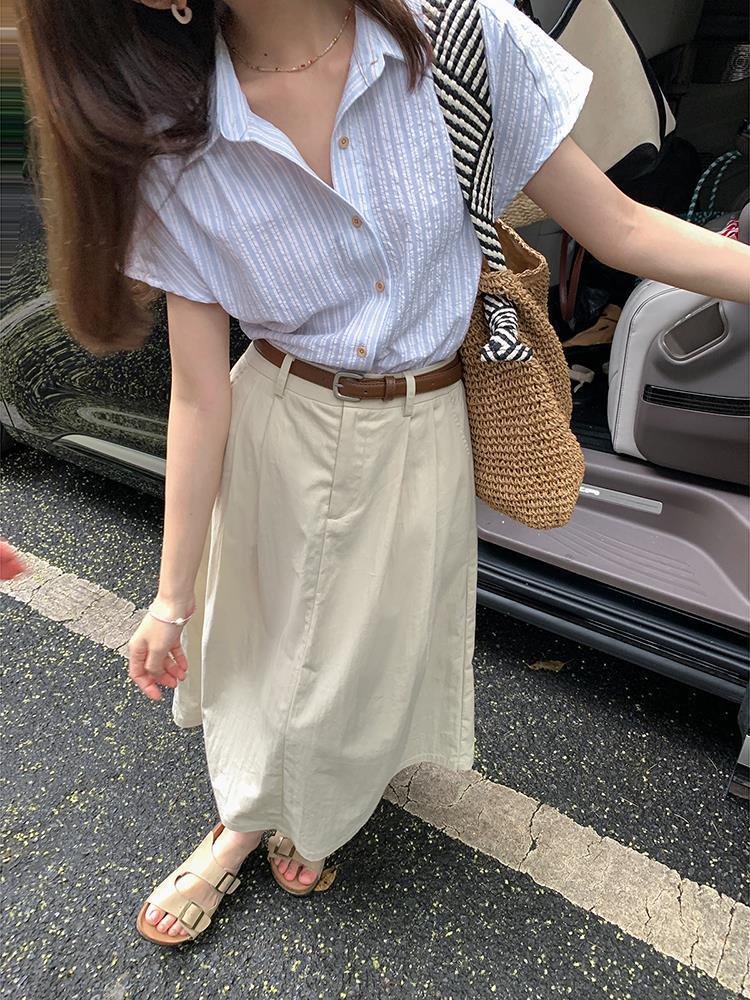 西西里安 通勤bi备单品~奶油杏大摆半身裙女小个子基础百搭a字裙