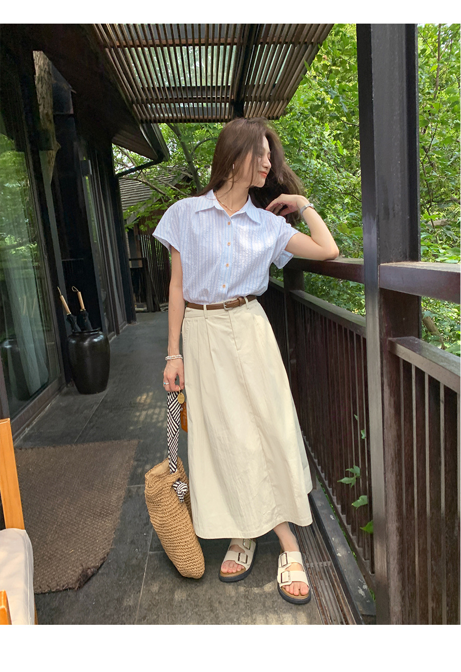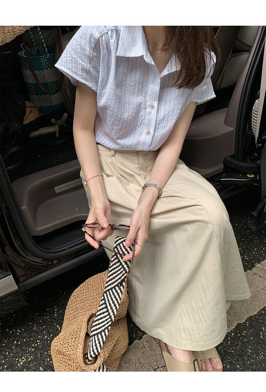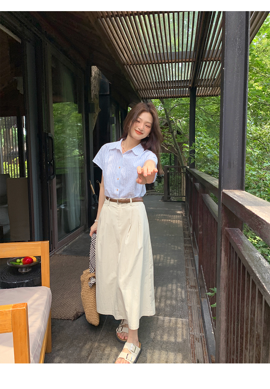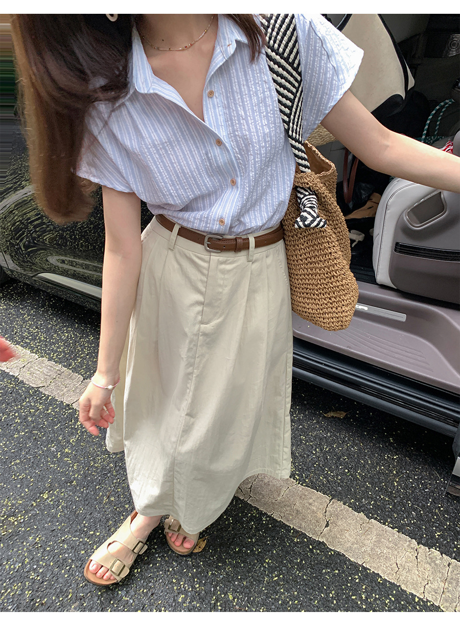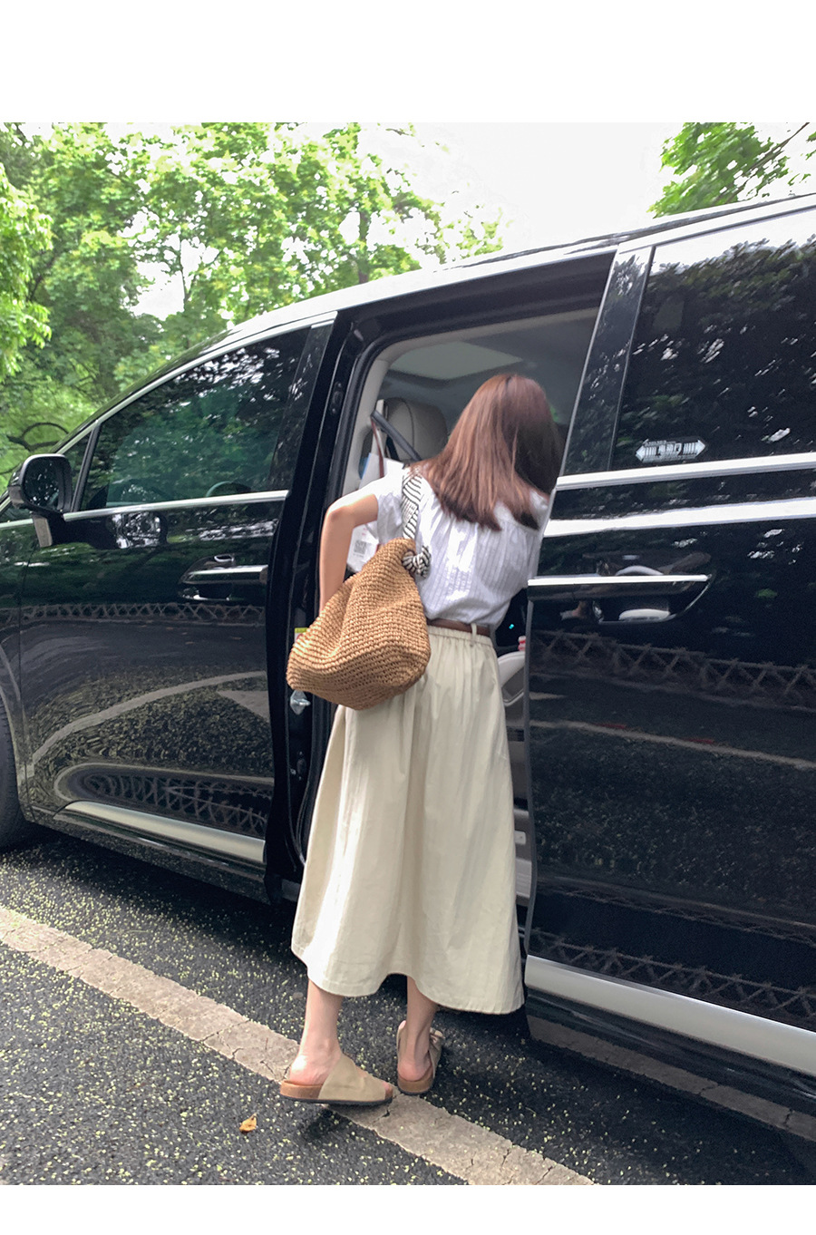西西里安 通勤bi备单品~奶油杏大摆半身裙女小个子基础百搭a字裙