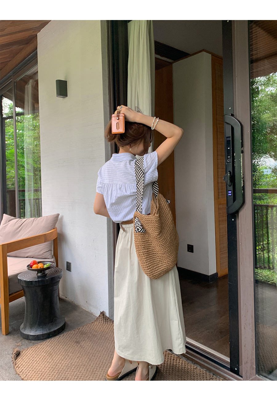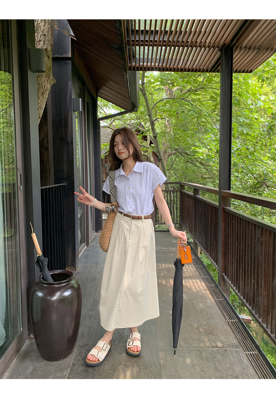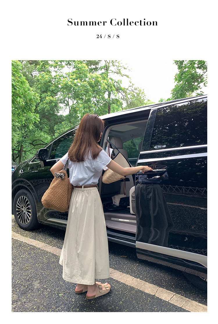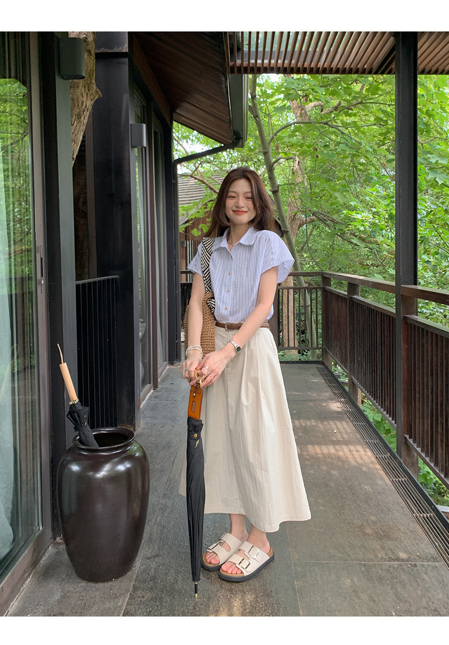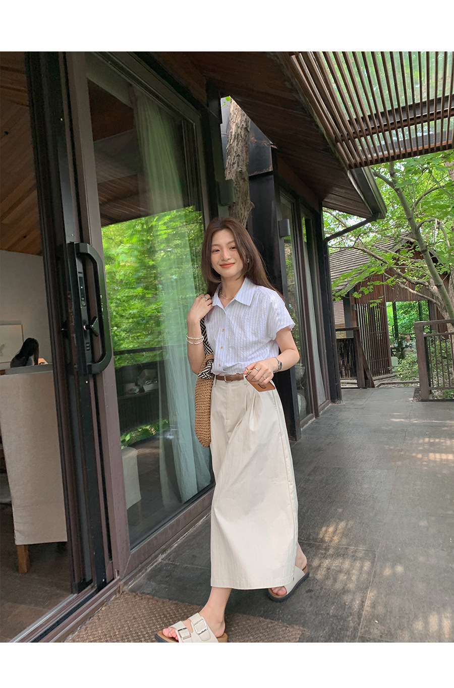 西西里安 通勤bi备单品~奶油杏大摆半身裙女小个子基础百搭a字裙
