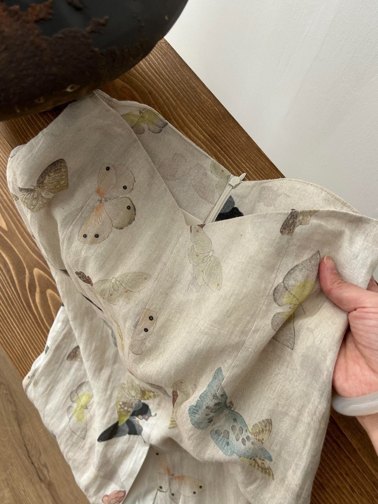 亚麻色多彩蝴蝶印花开衩亚麻长裙2025新款今年流行爆款半身裙夏季