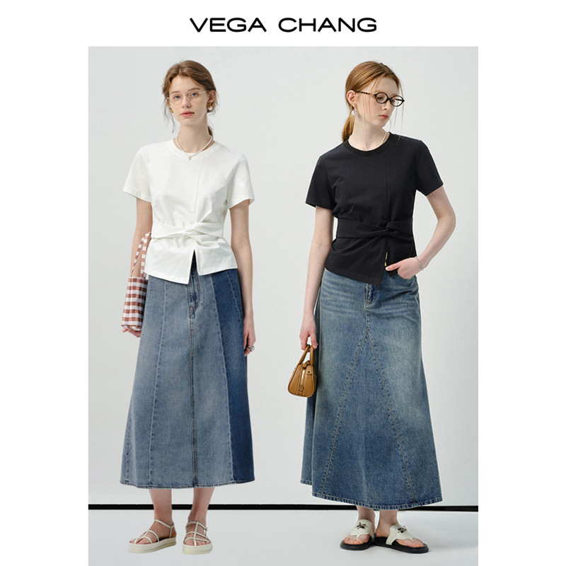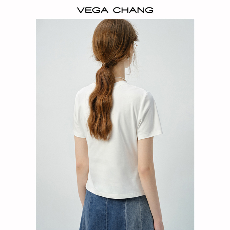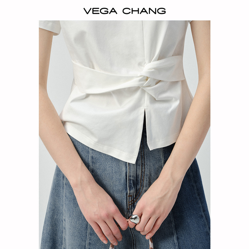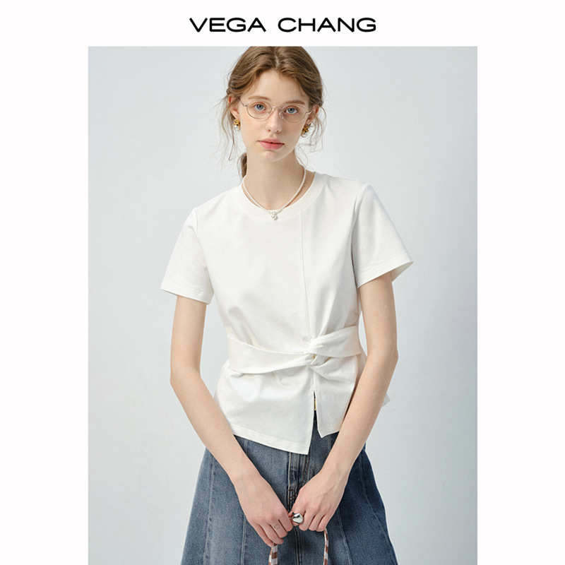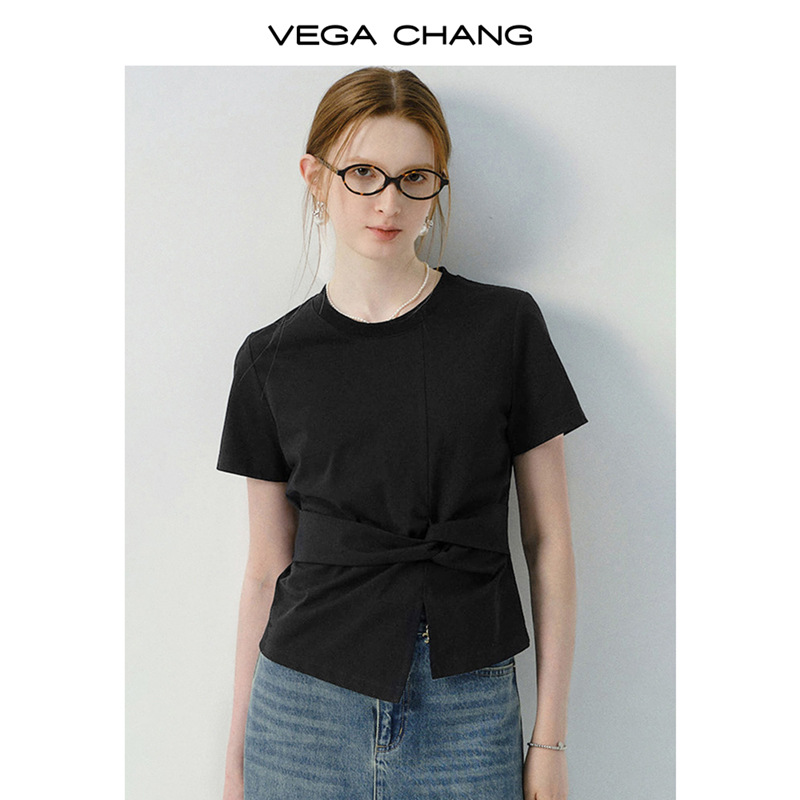 VEGA CHANG短袖t恤女夏2025新款气质休闲设计感防晒速干收腰上衣