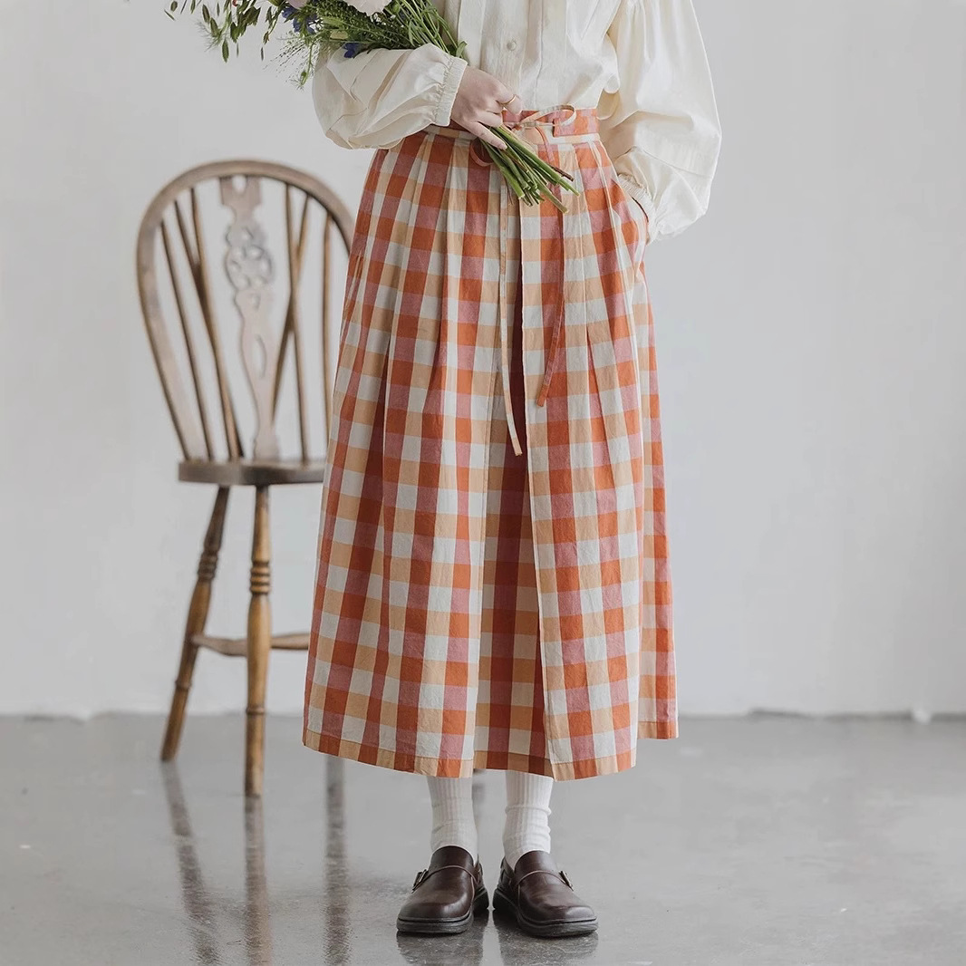 橘色调半身裙 舒适抽绳系带大摆裙 春日穿搭小个子显瘦裙子