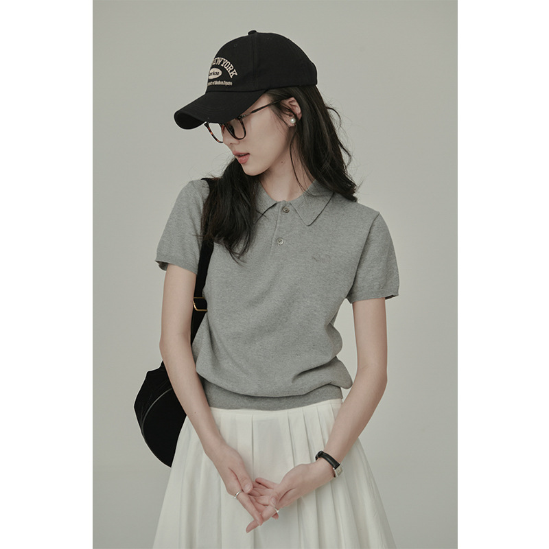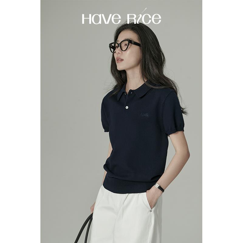 HAVERICE饭馆 知识分子 2025新款经典2.0复古针织短袖t恤POLO衫女