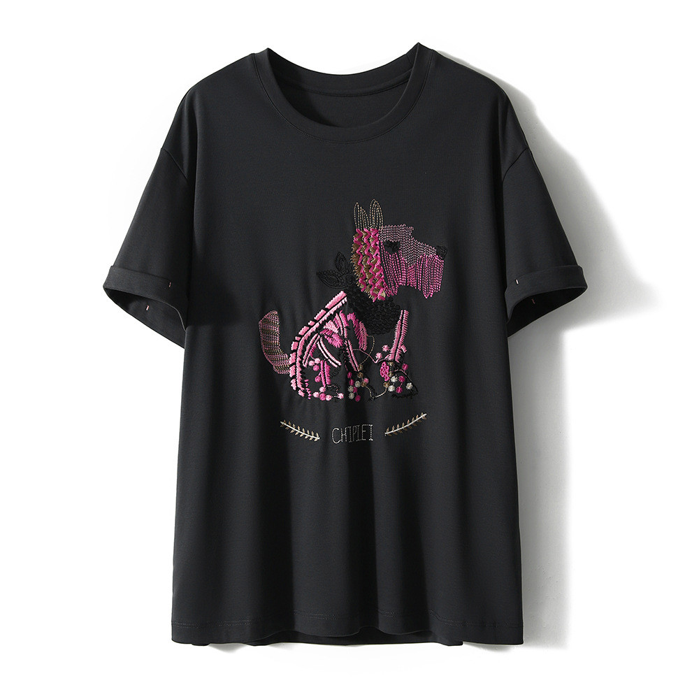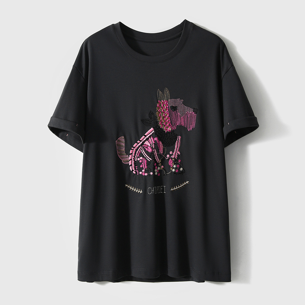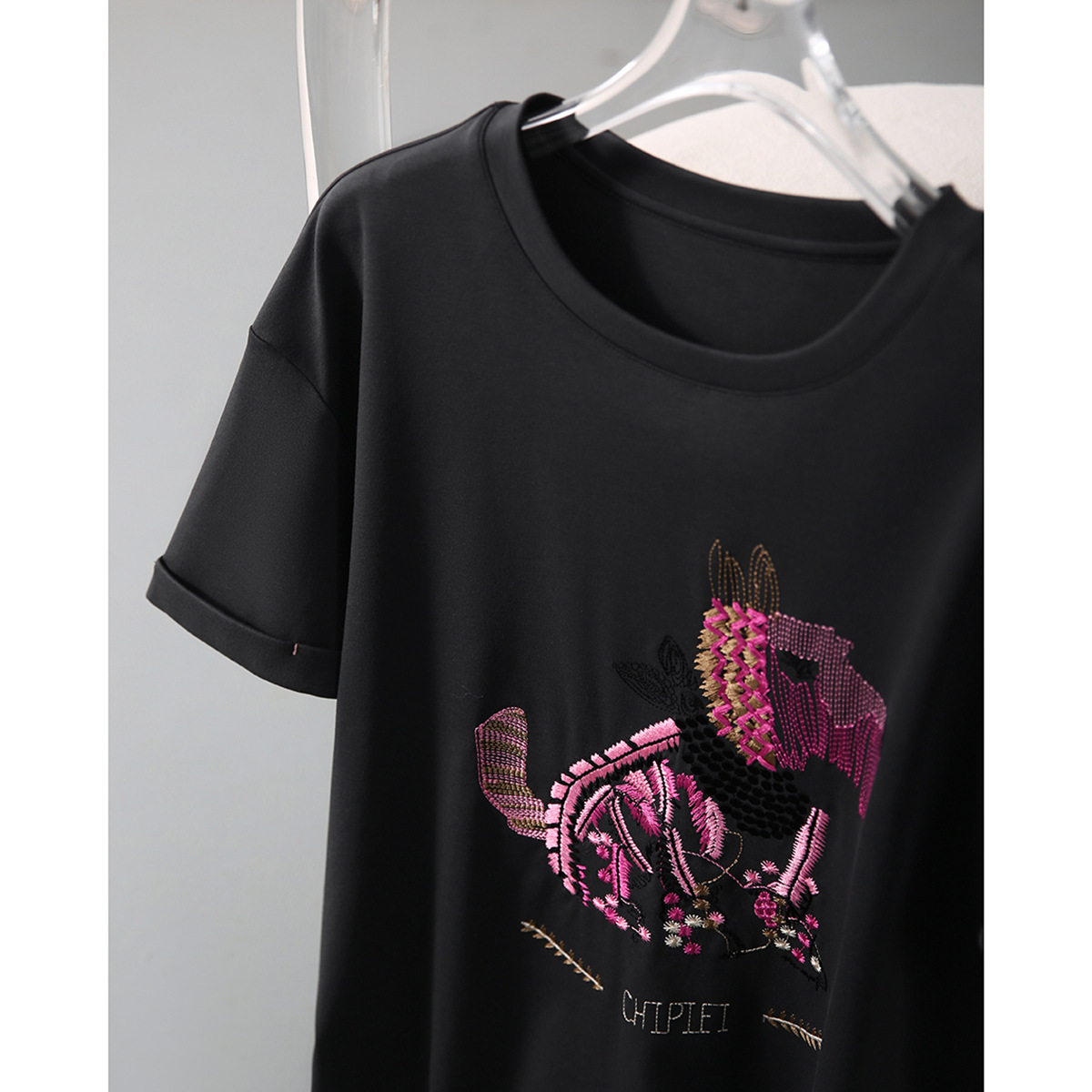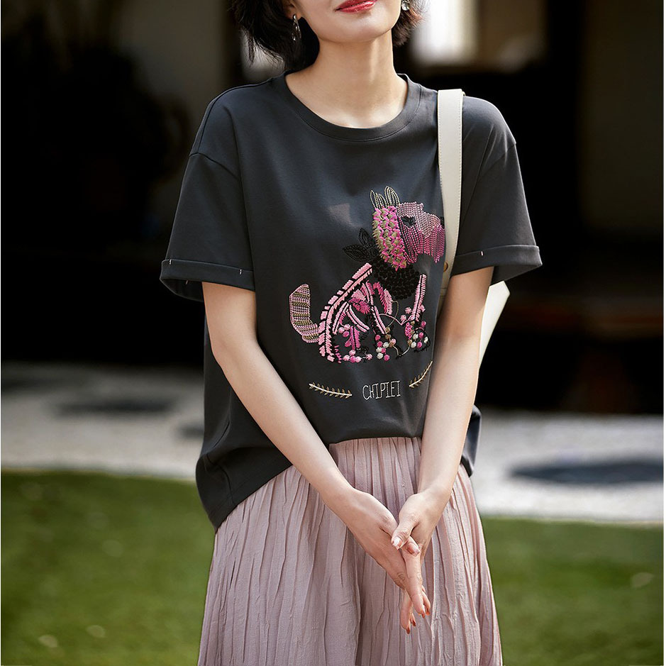 甜酷萌宠|重工刺绣液氨长绒棉短袖T恤宽松上衣女夏季新款