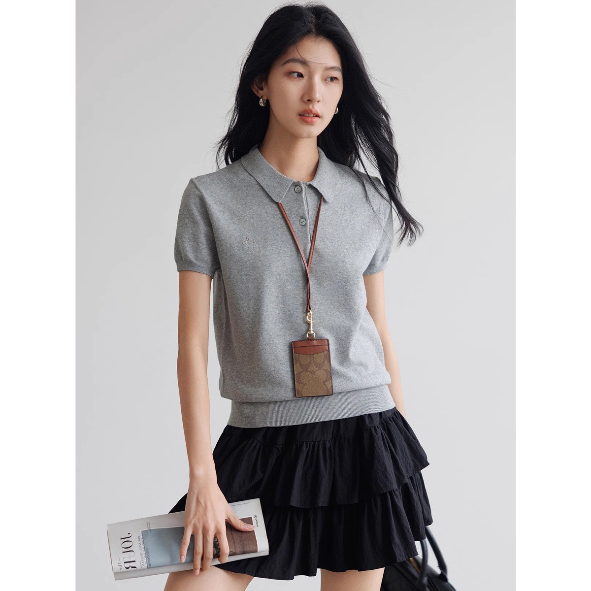 美式别致灰色短袖t恤女2025年新款夏季设计感小众别致POLO领上衣