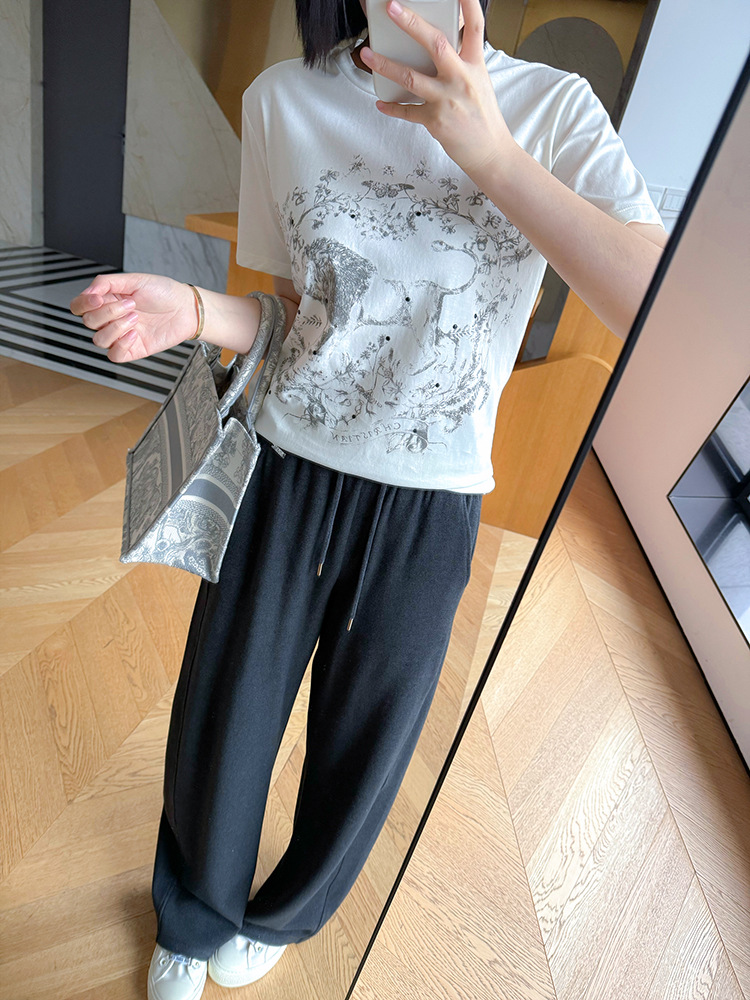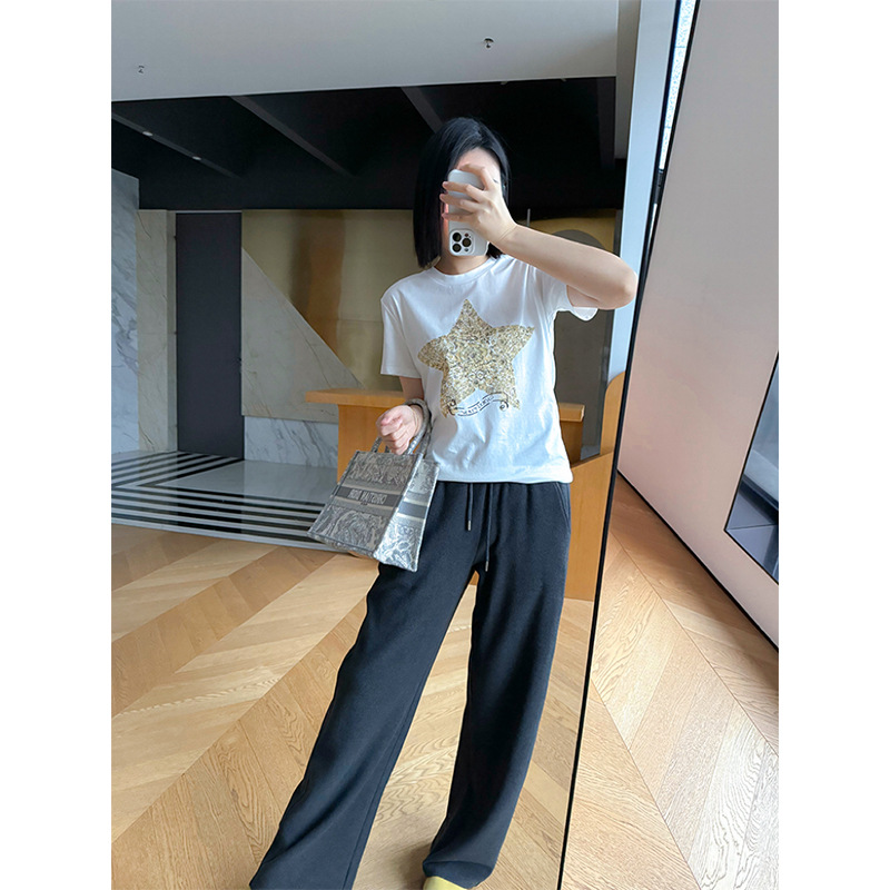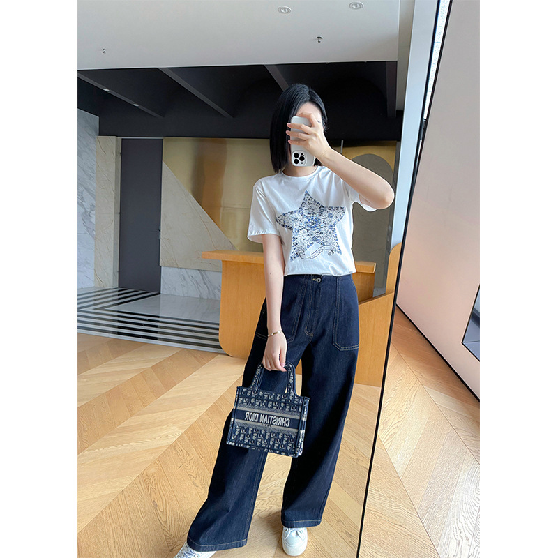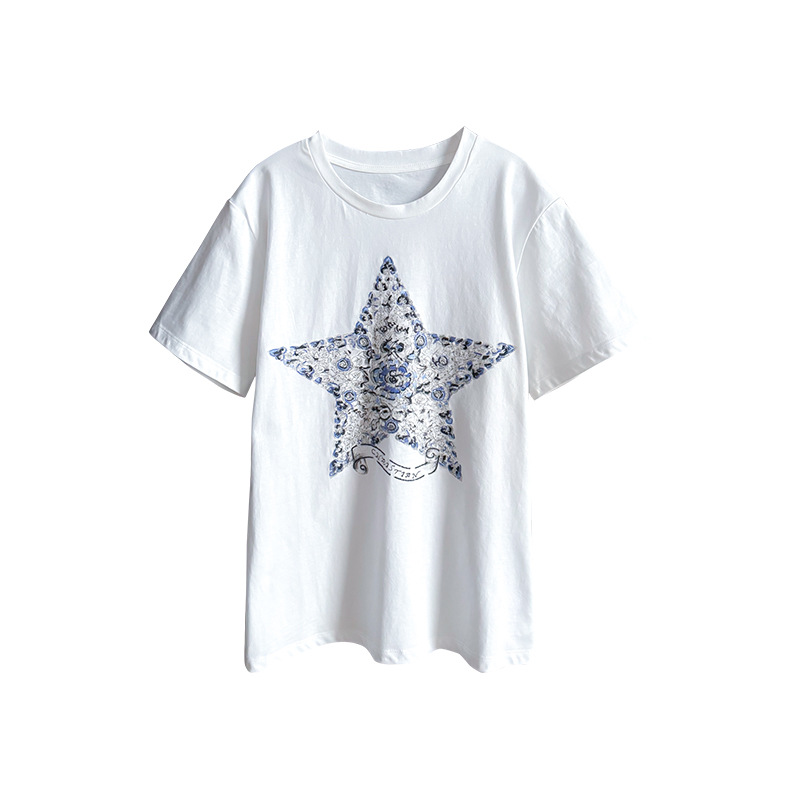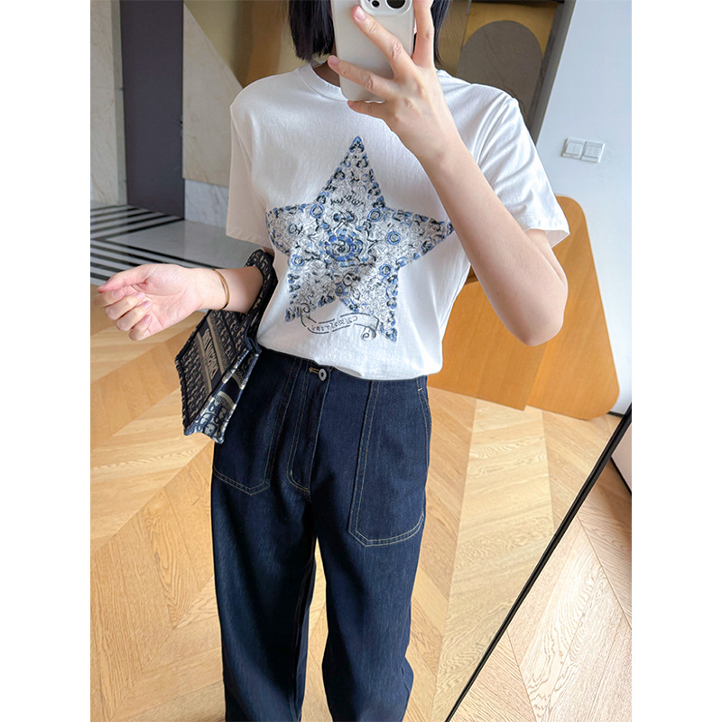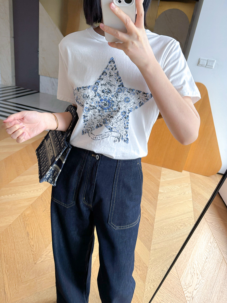 鱼小瑜|精致重磅~25春夏高支棉经典星星花卉刺绣正肩T恤LL2501