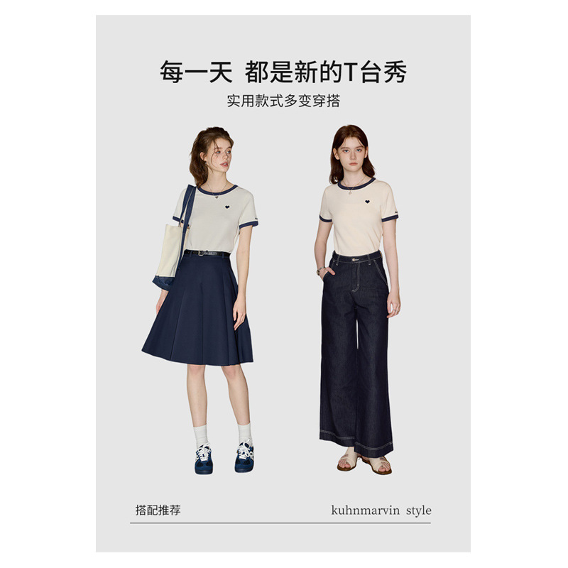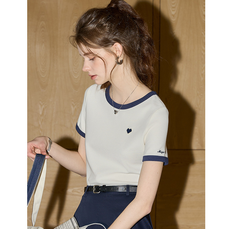 爱心刺绣圆领T恤女2025夏季新款百搭短袖上衣