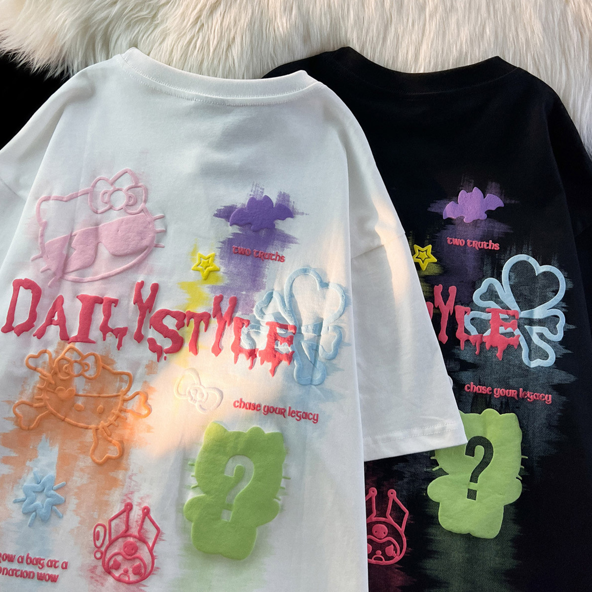 潮牌嘻哈卡通猫咪字母印花长袖t恤男女潮牌甜酷风宽松情侣上衣ins