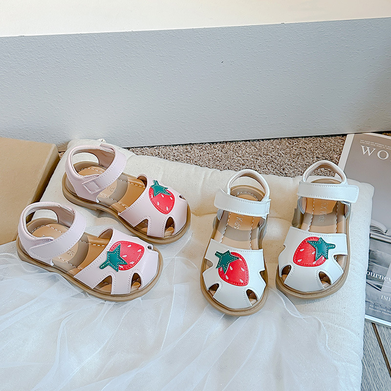 女童包头凉鞋韩版草莓鞋2025年夏季新款宝宝学步鞋中小童防滑凉鞋