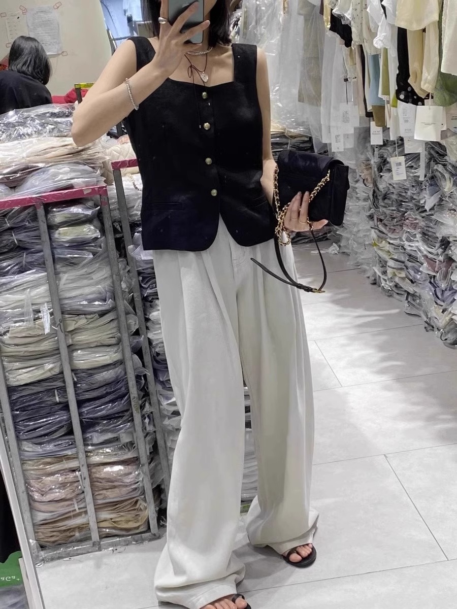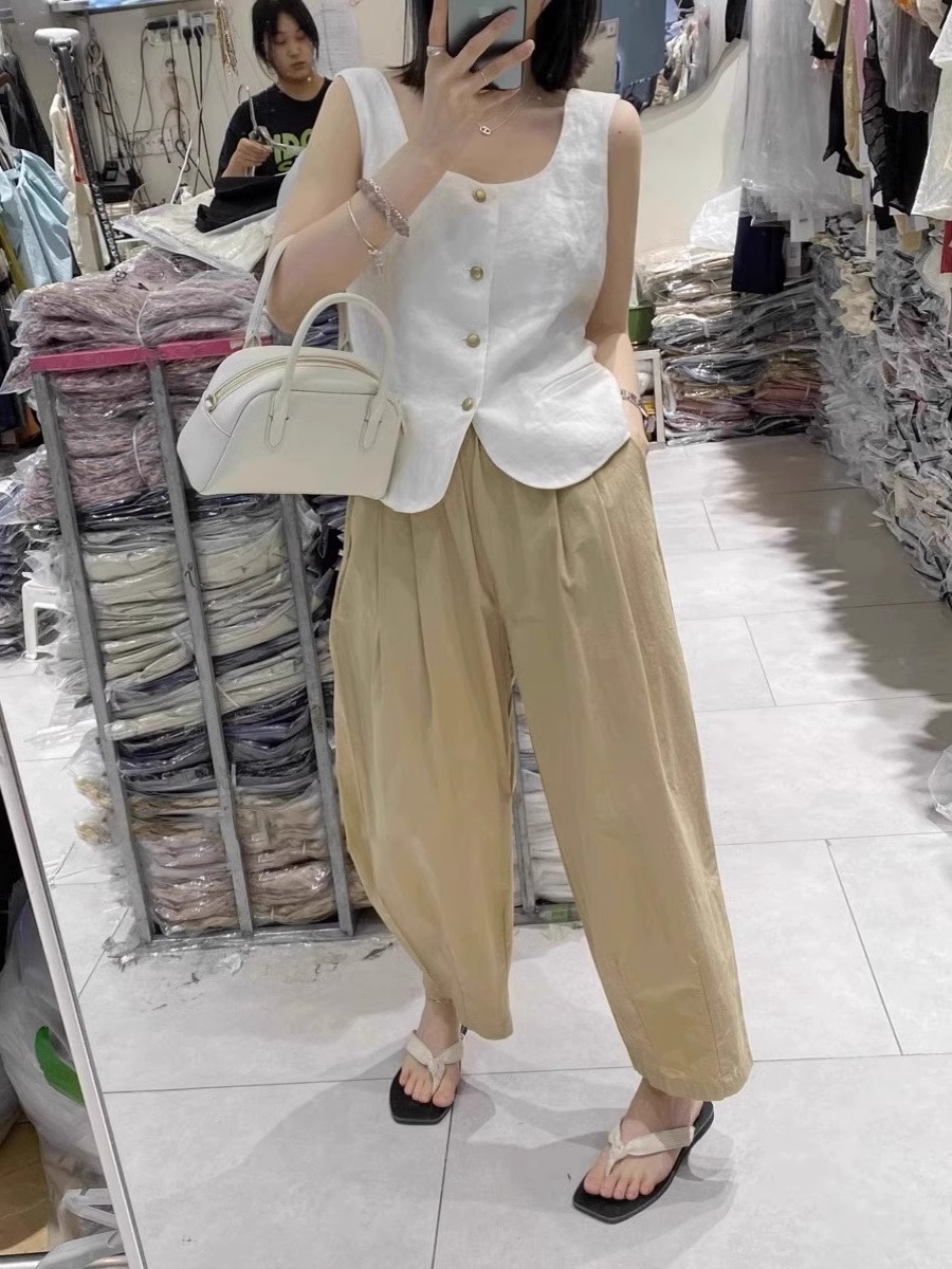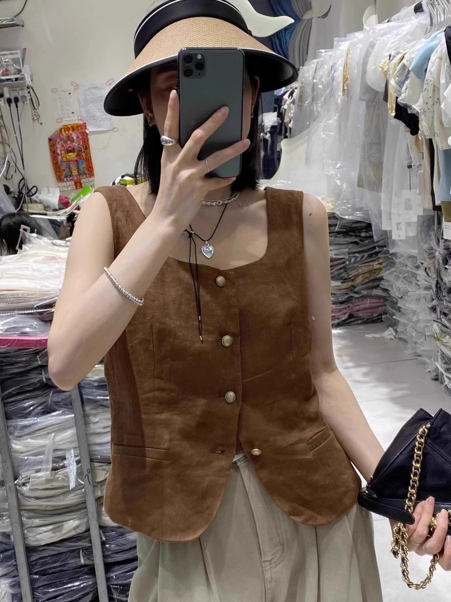 小香风棉麻无袖背心马甲女夏季新款法式简约纯色亚麻坎肩百搭上衣