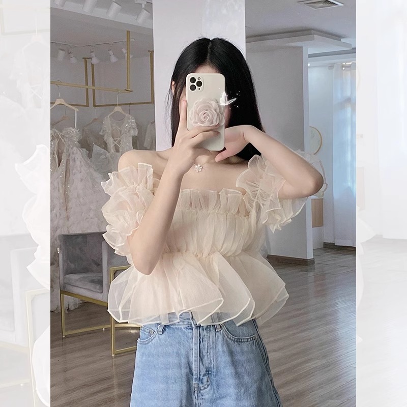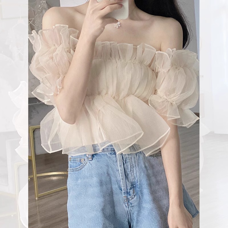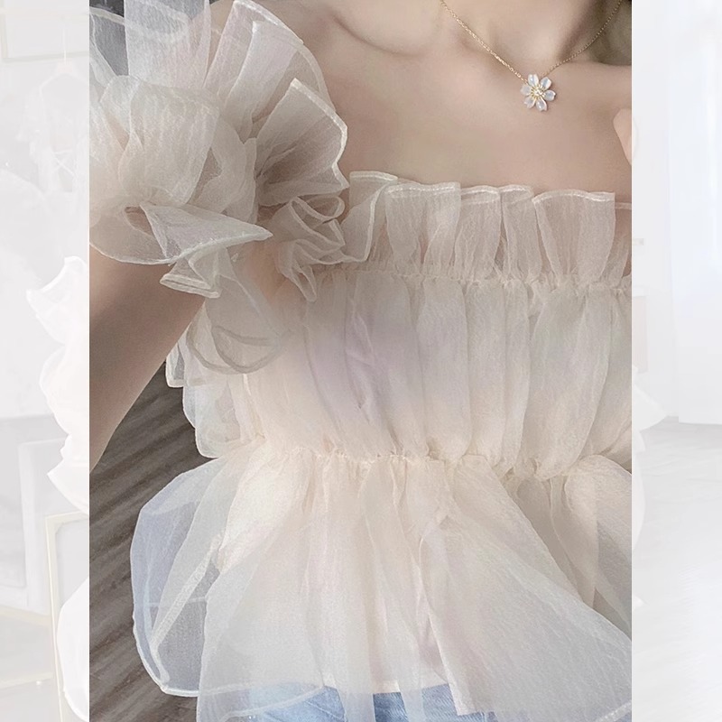 法式甜美气质一字肩雪纺衫女夏季高级感小众别致漂亮显瘦甜辣上衣