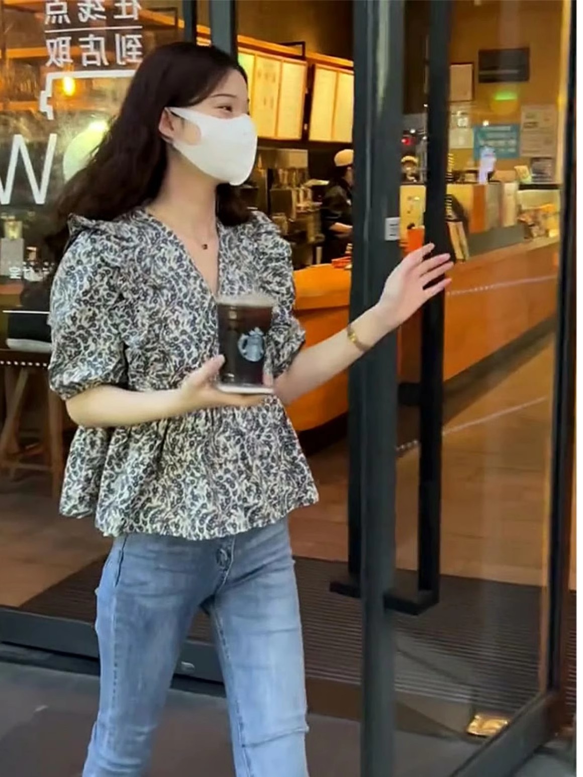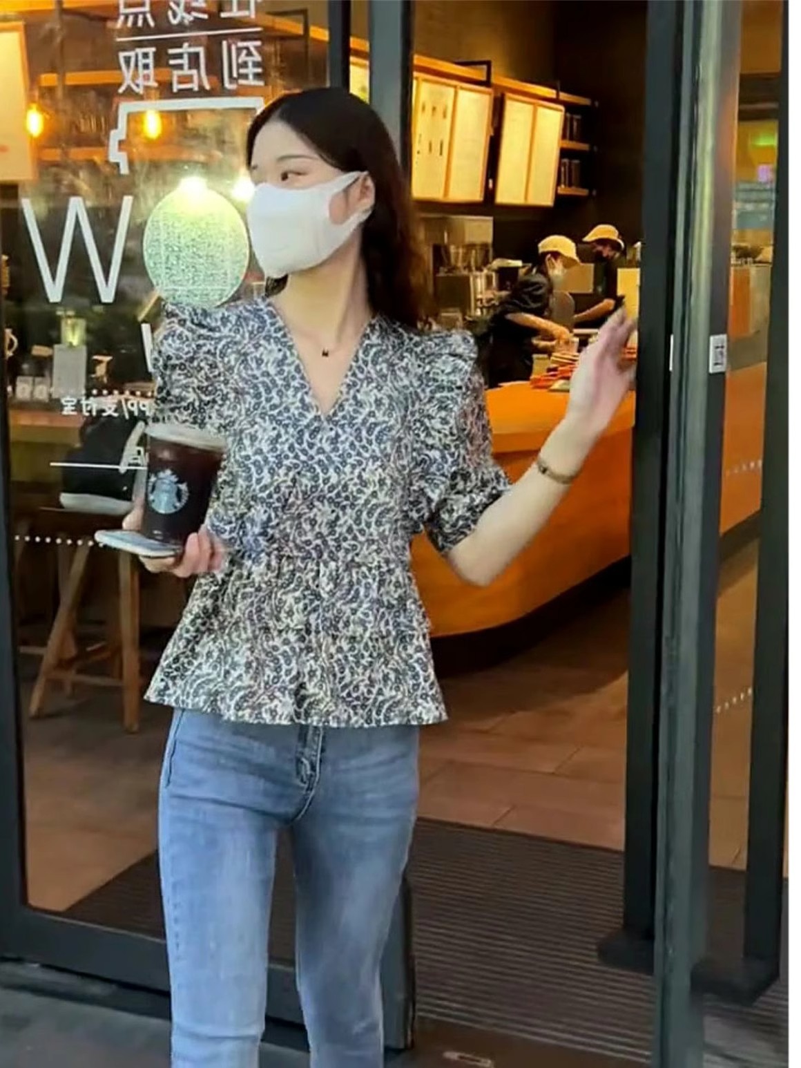 泡泡袖V领衬衫女新款时尚洋气时髦小众别致漂亮短款碎花上衣