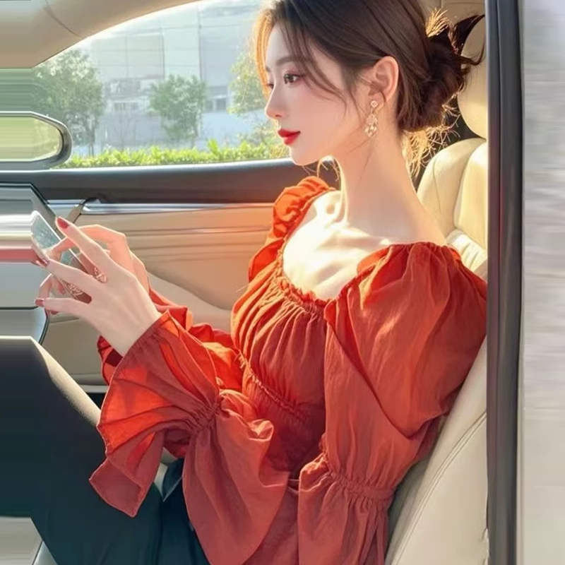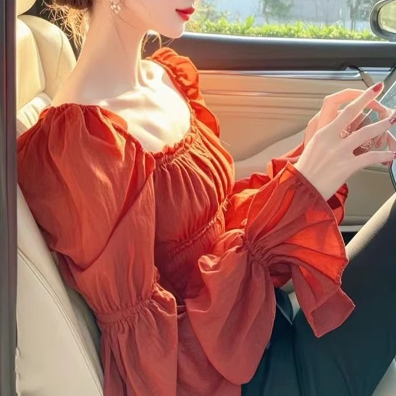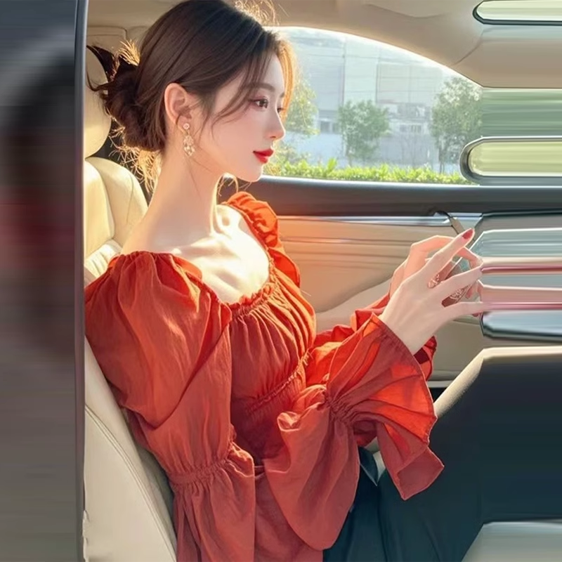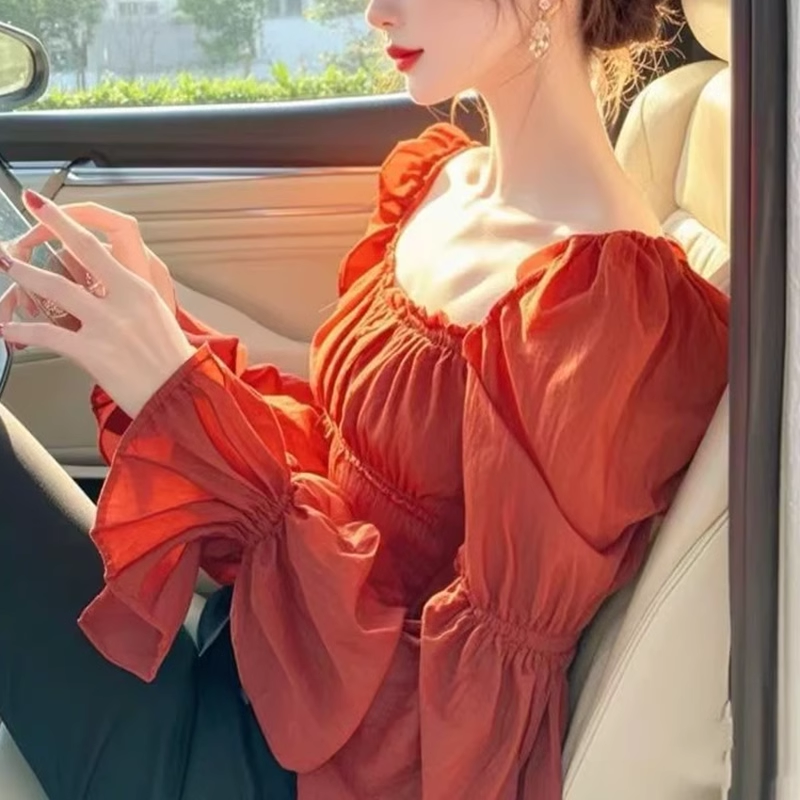 法式甜美喇叭袖衬衫女2025新款超好看减龄气质显瘦露背设计感上衣