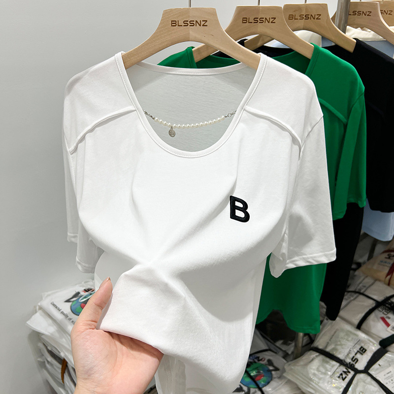 纯棉一字领短袖T恤女新款夏宽松设计感小众显瘦百搭薄款上衣