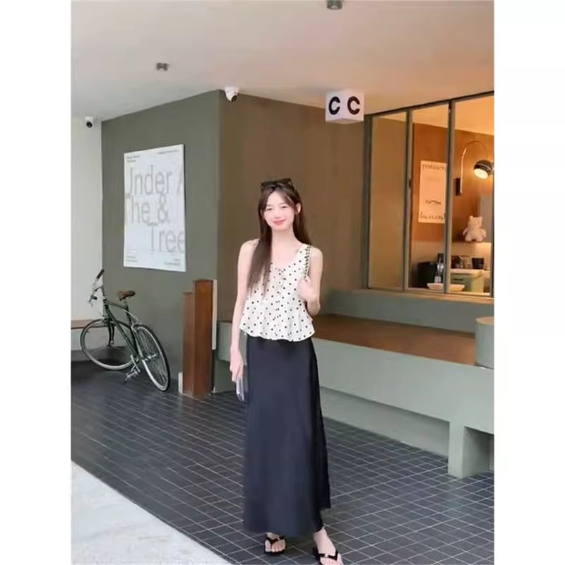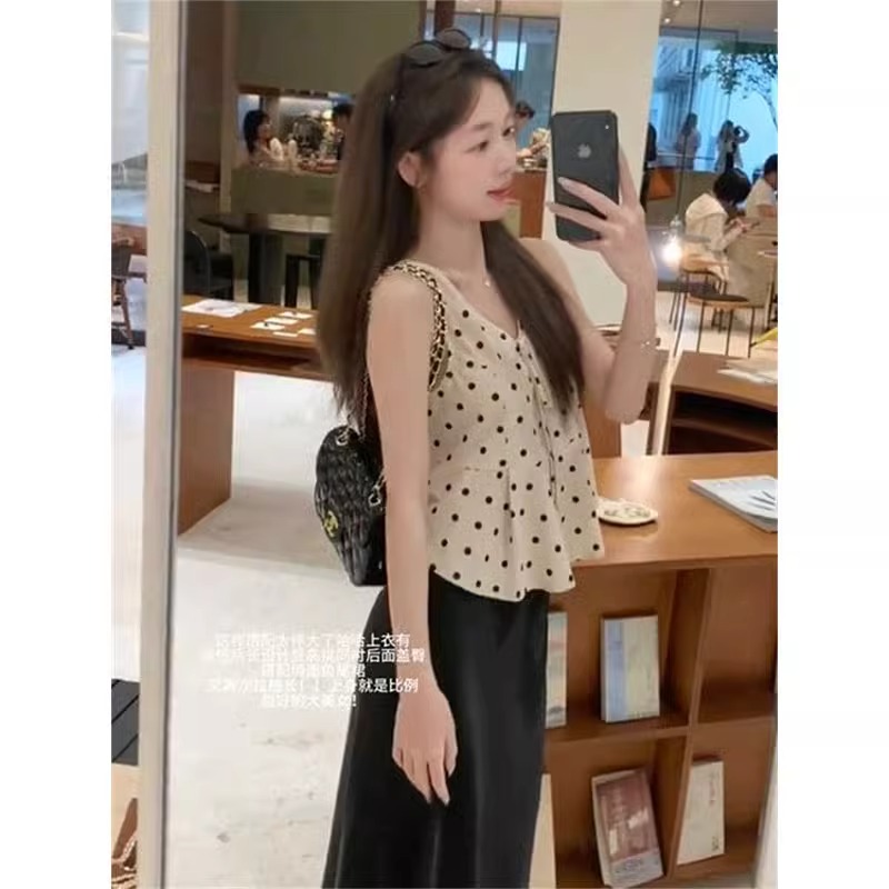 法式V领波点吊带背心女新款夏季设计感小众显瘦外穿短款上衣
