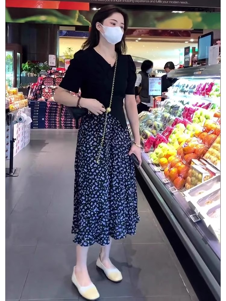 今年流行漂亮套装裙新款夏装搭配一整套显瘦法式碎花连衣裙女
