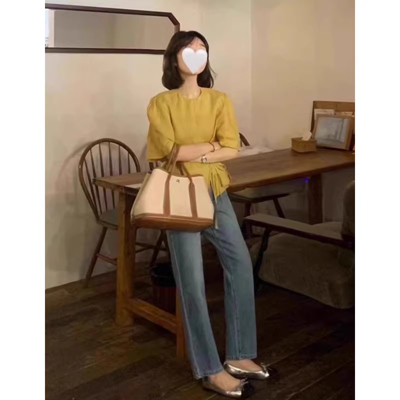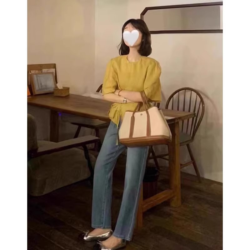 黄色【女装2024新款/今年流行漂亮小衫/轻熟/法式设计绝美/奶系温柔/设计感小众/洋气/独特别致/气质高级感/收腰遮肚子/超好看/甜美/仙气】