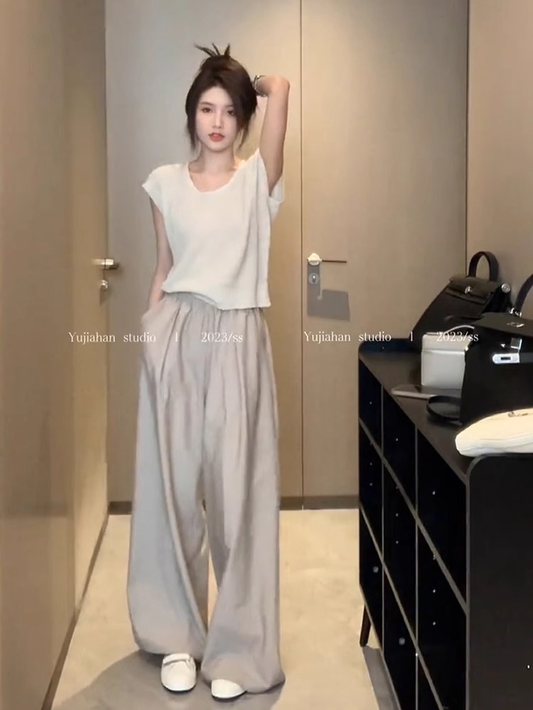黑白条纹裤子男夏季美式vibe直筒裤男休闲长裤垂感西装裤男拖地裤