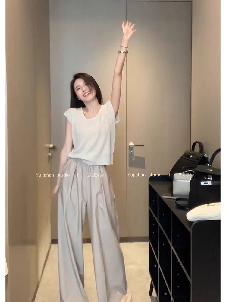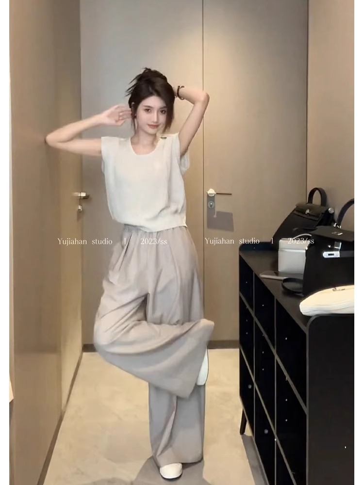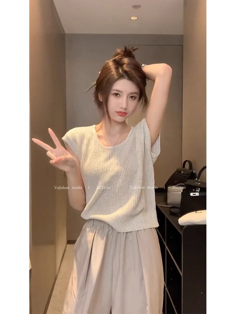 气质显瘦小飞短袖针织上衣女夏季2025新款设计感小众圆领正肩t恤