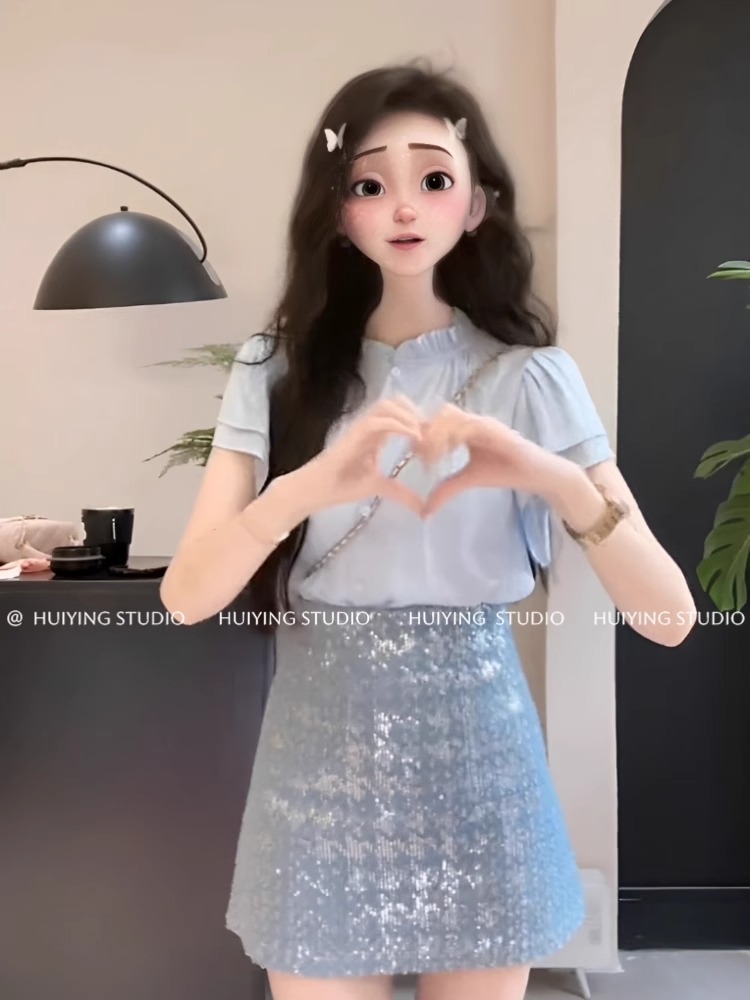 法式高级感蓝色小飞袖上衣女夏季新款气质雪纺小衫设计感小众