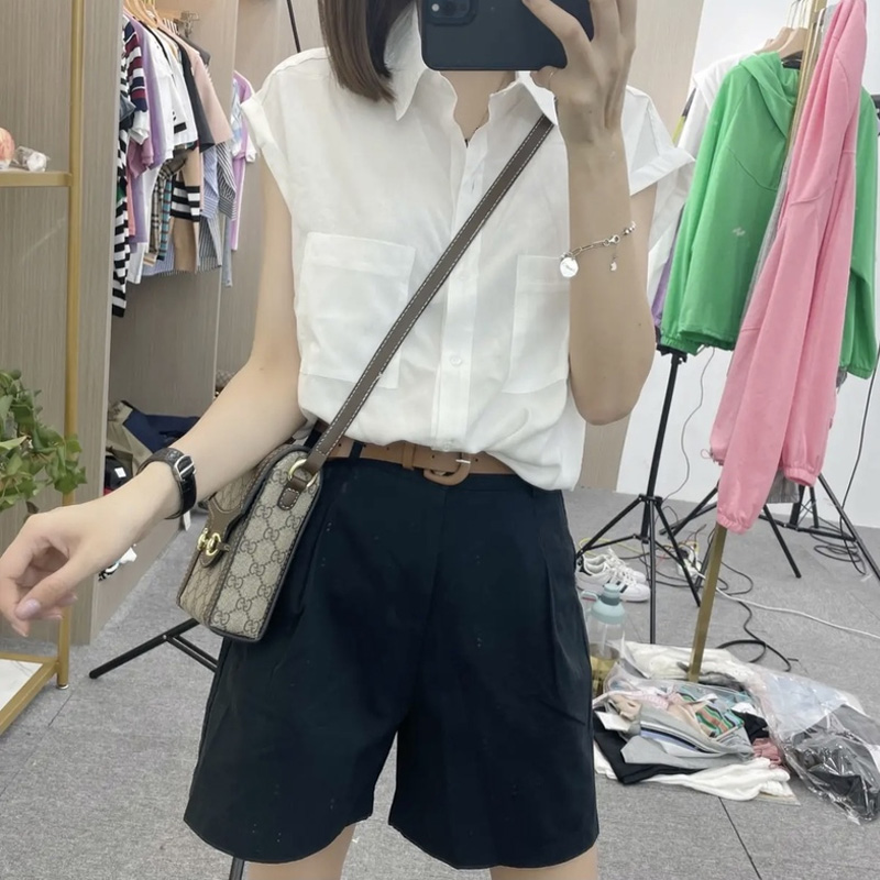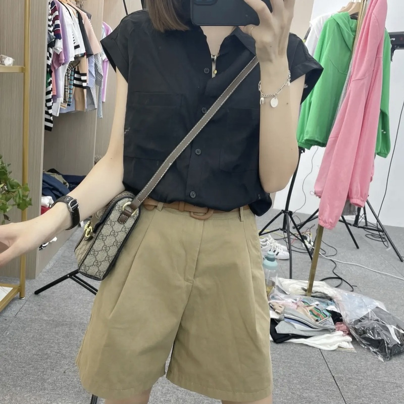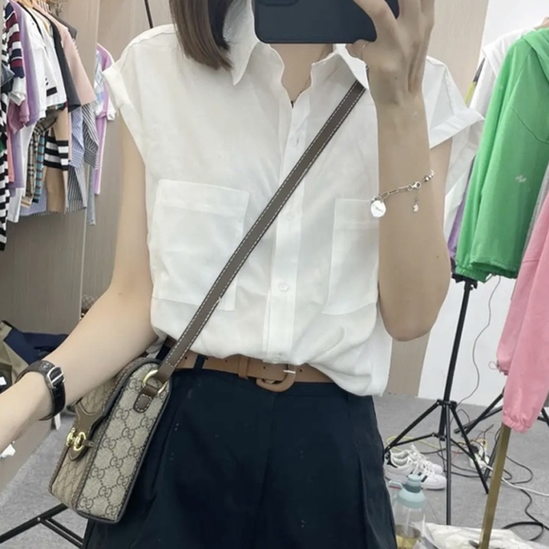 អាវដៃខ្លីបែប Retro Hong Kong រដូវក្តៅស្តើងរលុង អារម្មណ៍រចនាកម្រិតខ្ពស់ពិសេសអាវអាវអាជីពអាជីពកំពូល