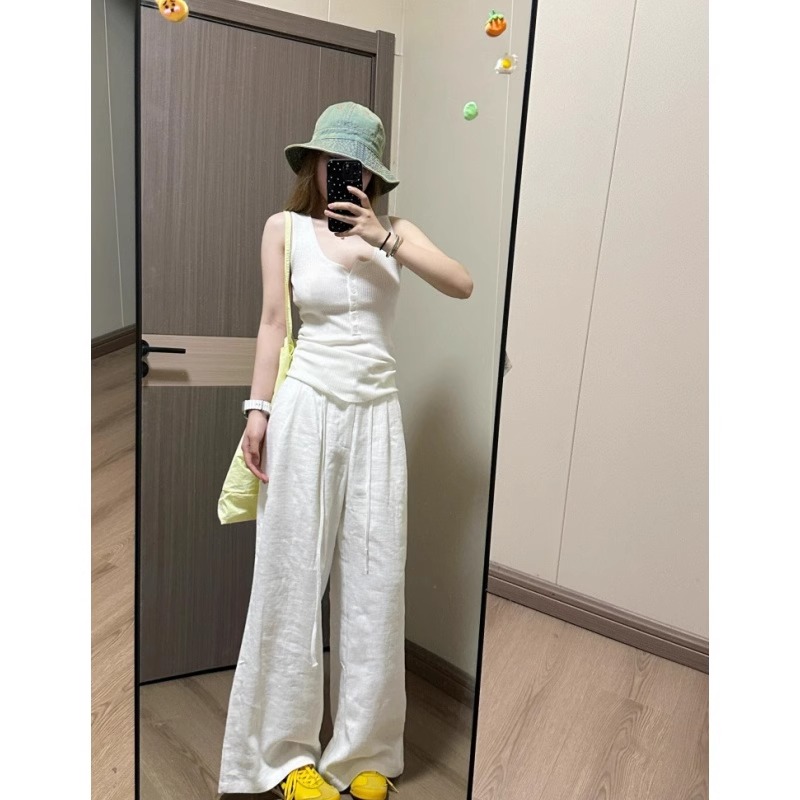 2025年夏季新款韩系搭配一整套休闲盐系穿搭背心阔腿裤两件套装女
