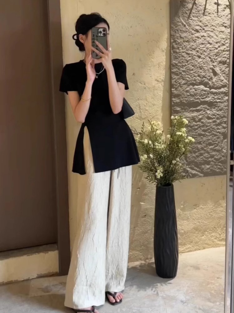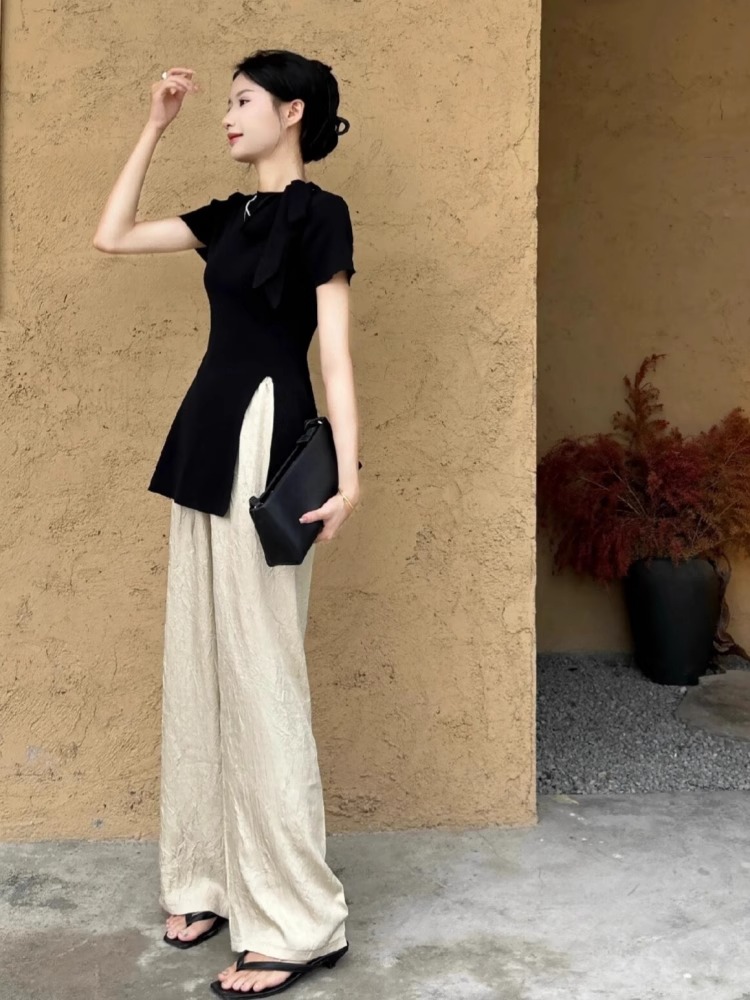 夏装搭配一整套韩系炸街减龄时尚小香风茶系穿搭阔腿裤两件套装女
