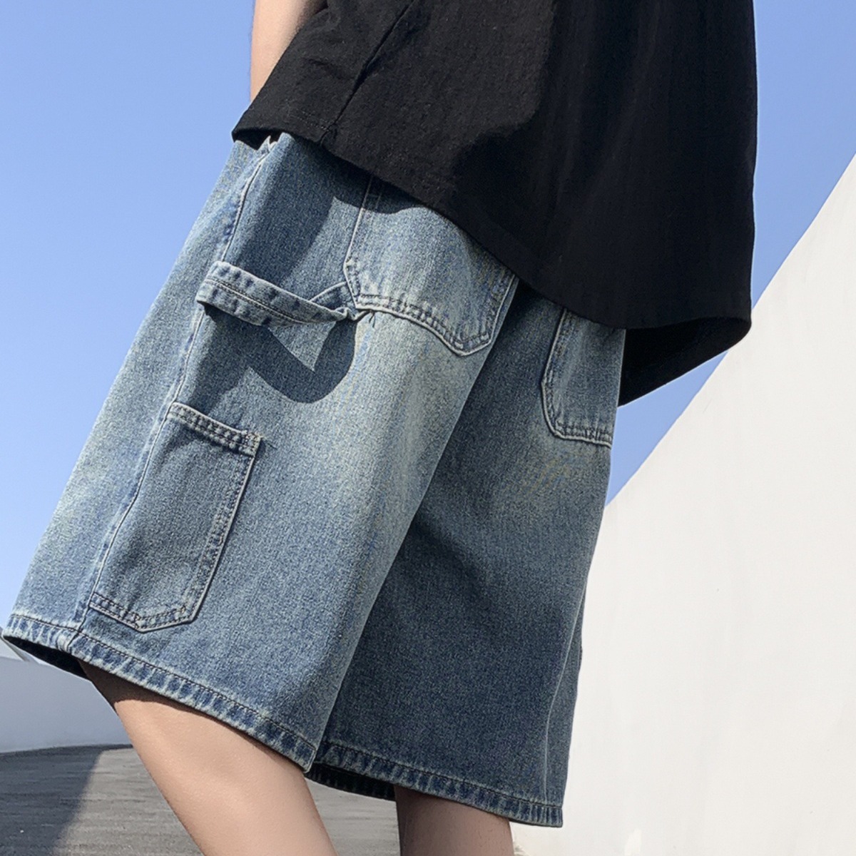 工装牛仔短裤男夏季休闲裤子潮牌美式复古五分裤欧美水洗中裤