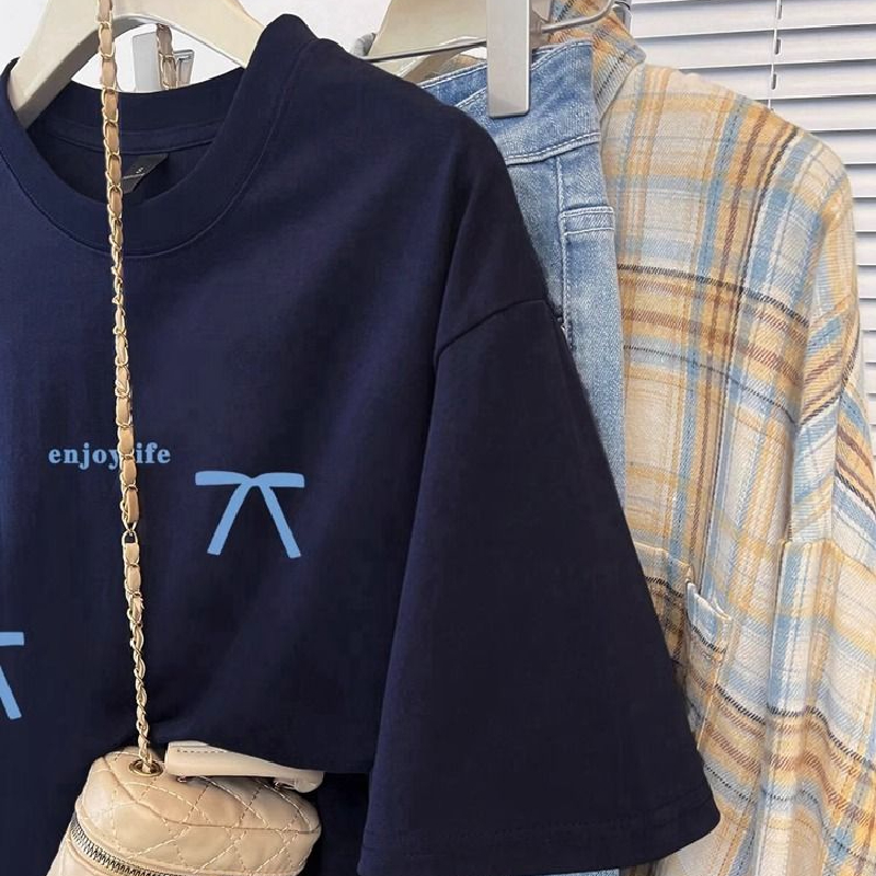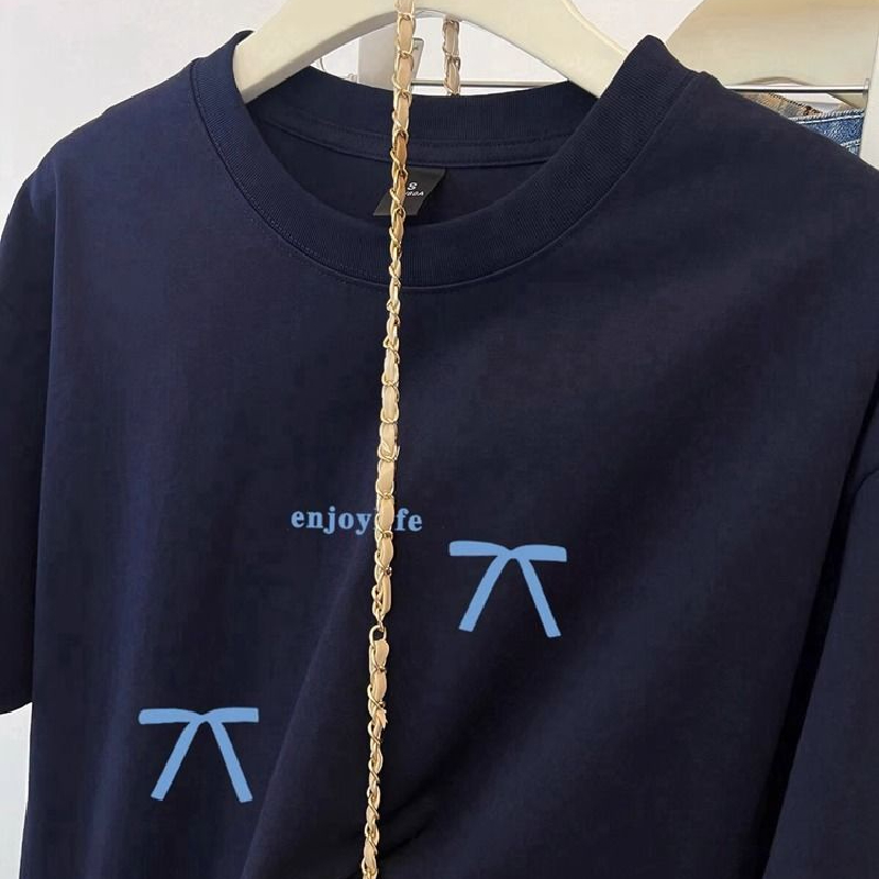 甜美小个子减龄圆领蝴蝶结印花短袖T恤女夏季新款宽松显瘦上衣服