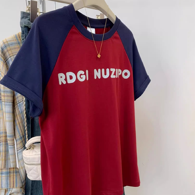 胖MM新款纯棉插肩短袖T恤女夏季时尚字母印花宽松显瘦打底衫上衣