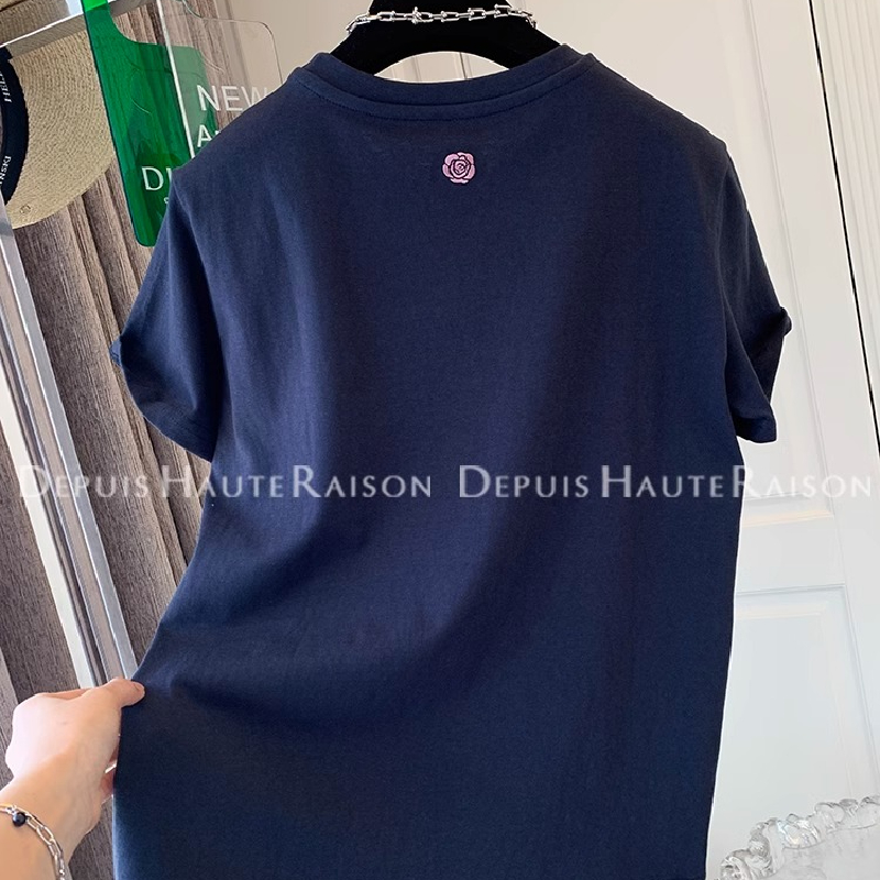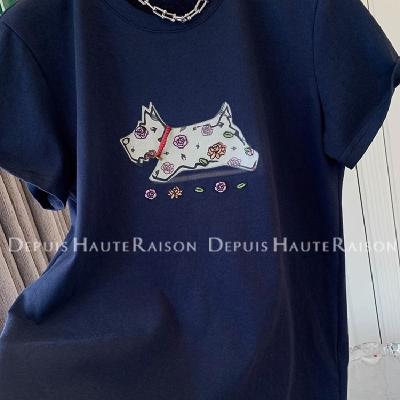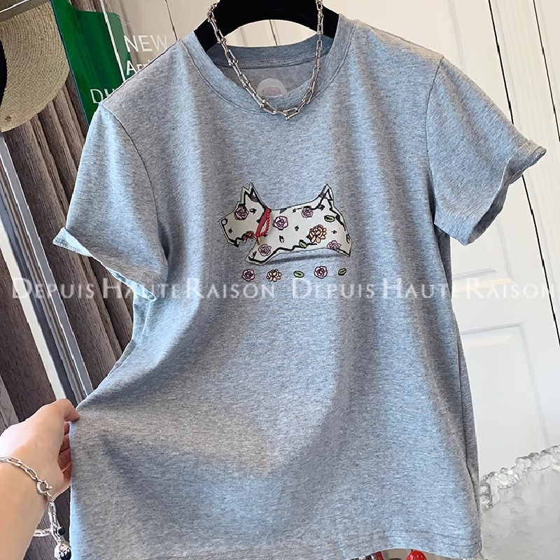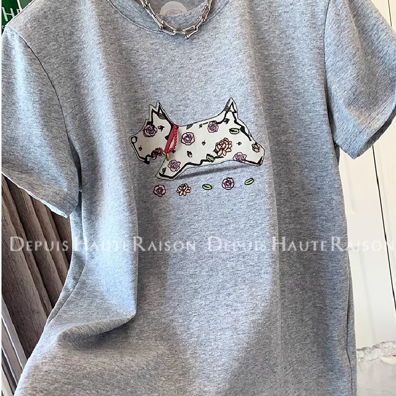 新款美式小个子小狗刺绣短袖T恤女夏季宽松显瘦休闲半袖上衣体恤