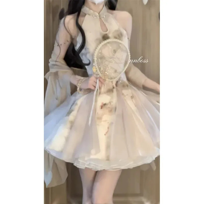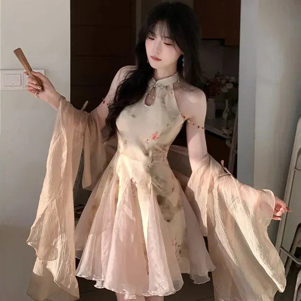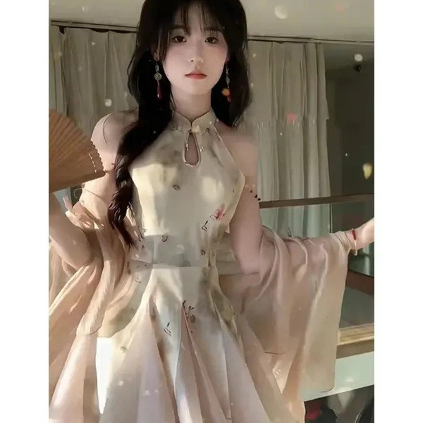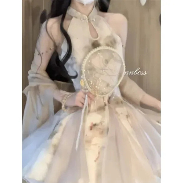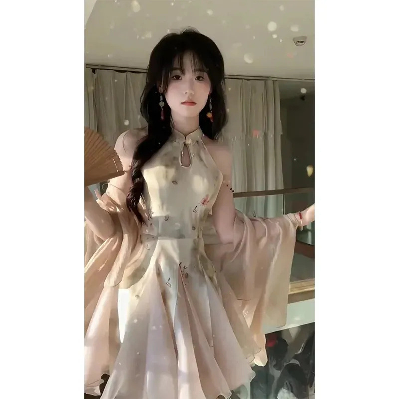 套装女新中式民国风2025新款拼接旗袍连衣裙收腰显瘦短裙防晒开衫