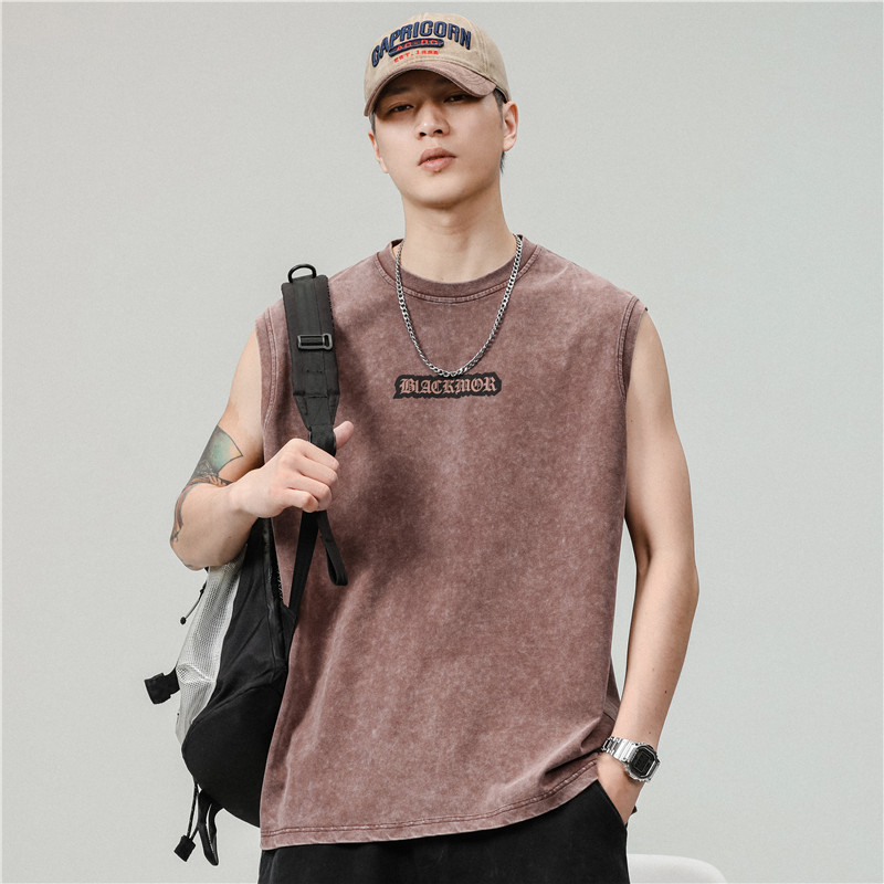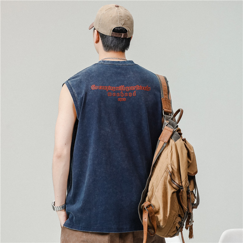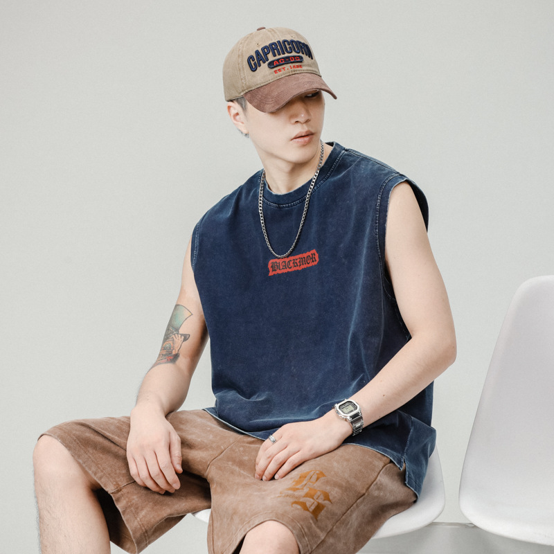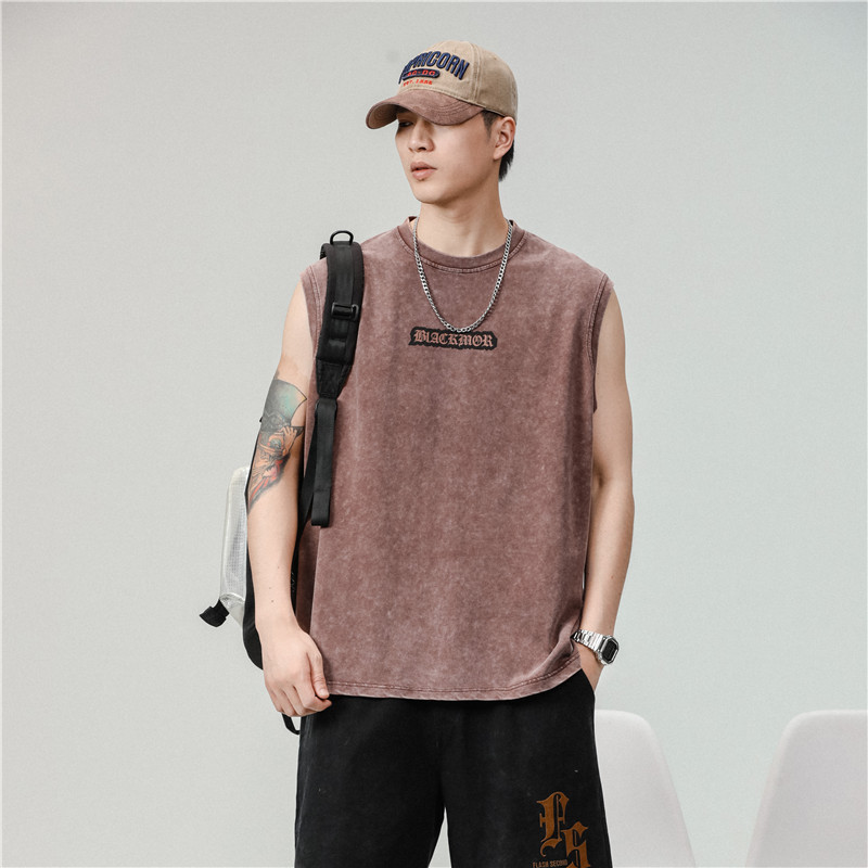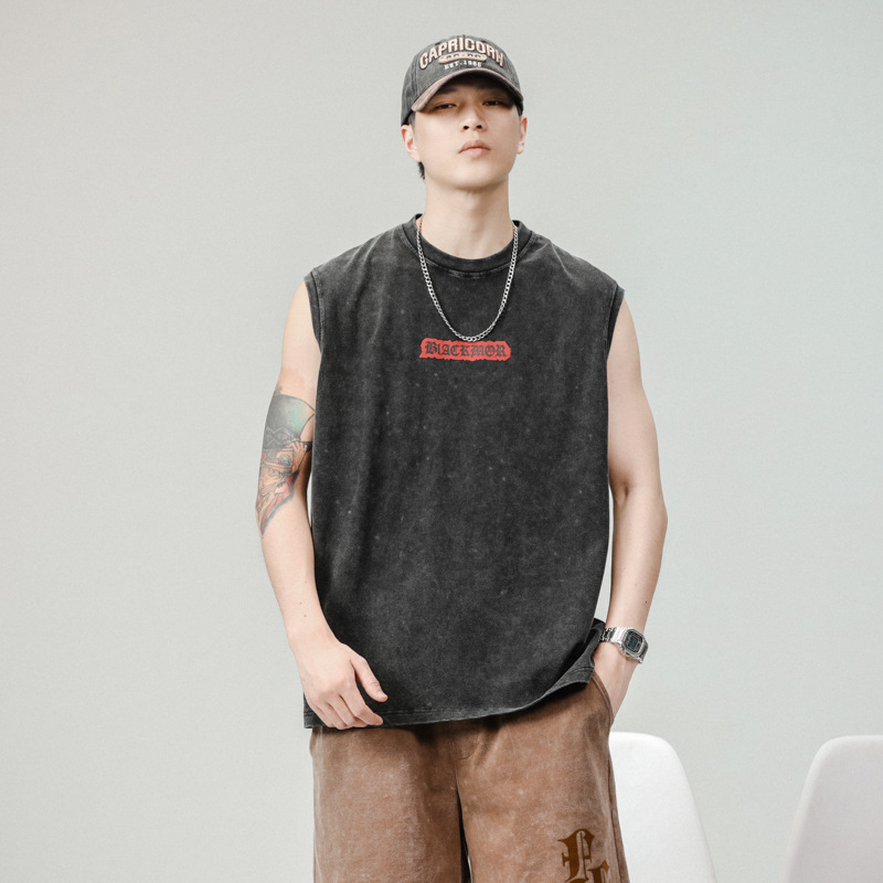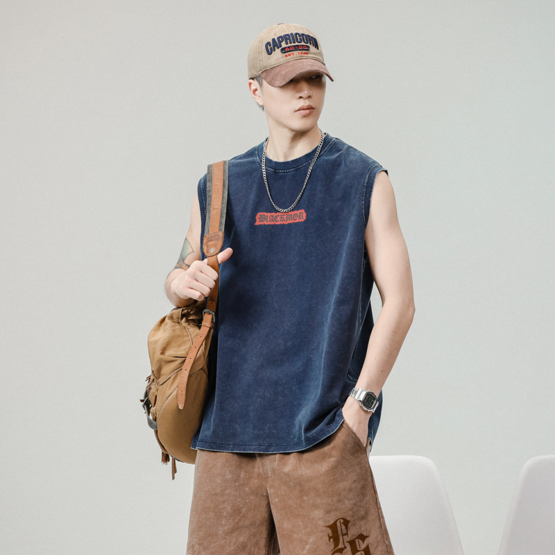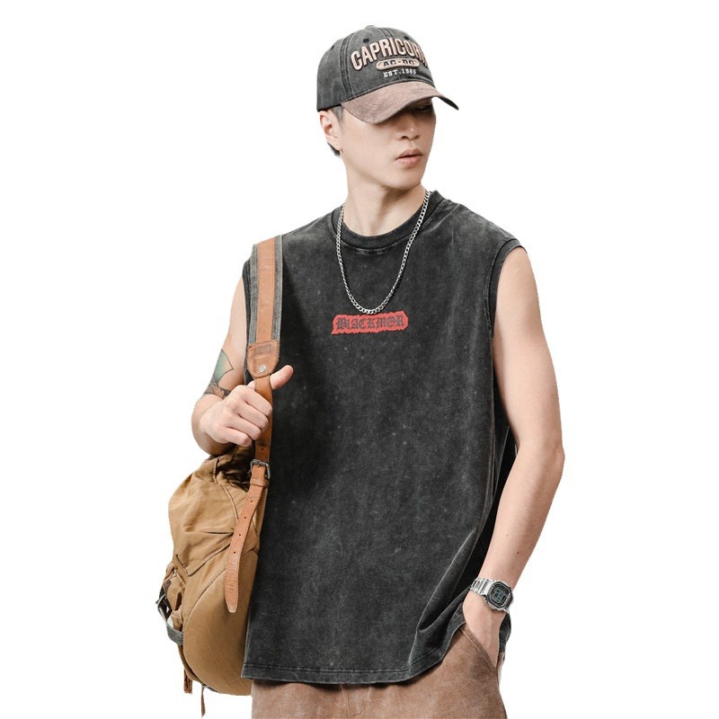 美式复古水洗无袖短袖男士夏季宽松重磅纯棉坎肩帅气运动健身背心