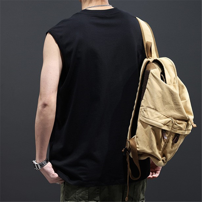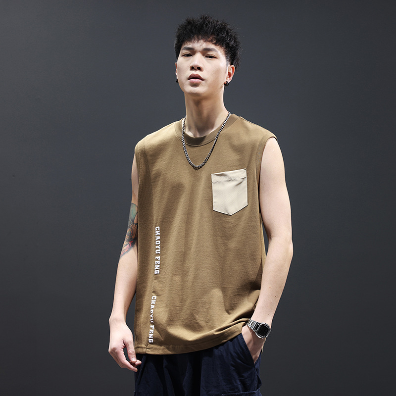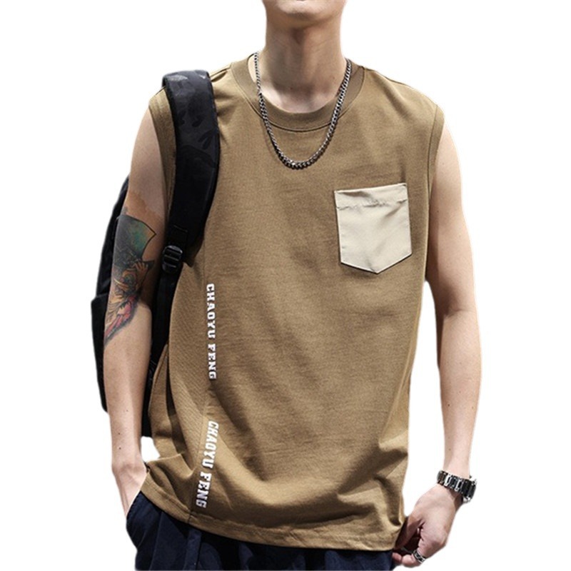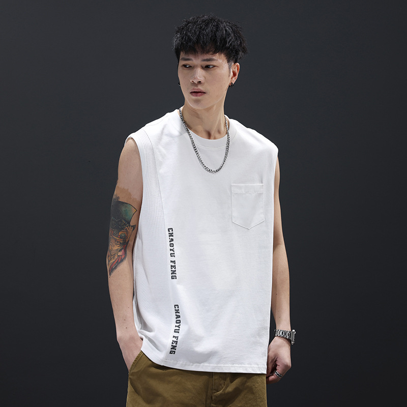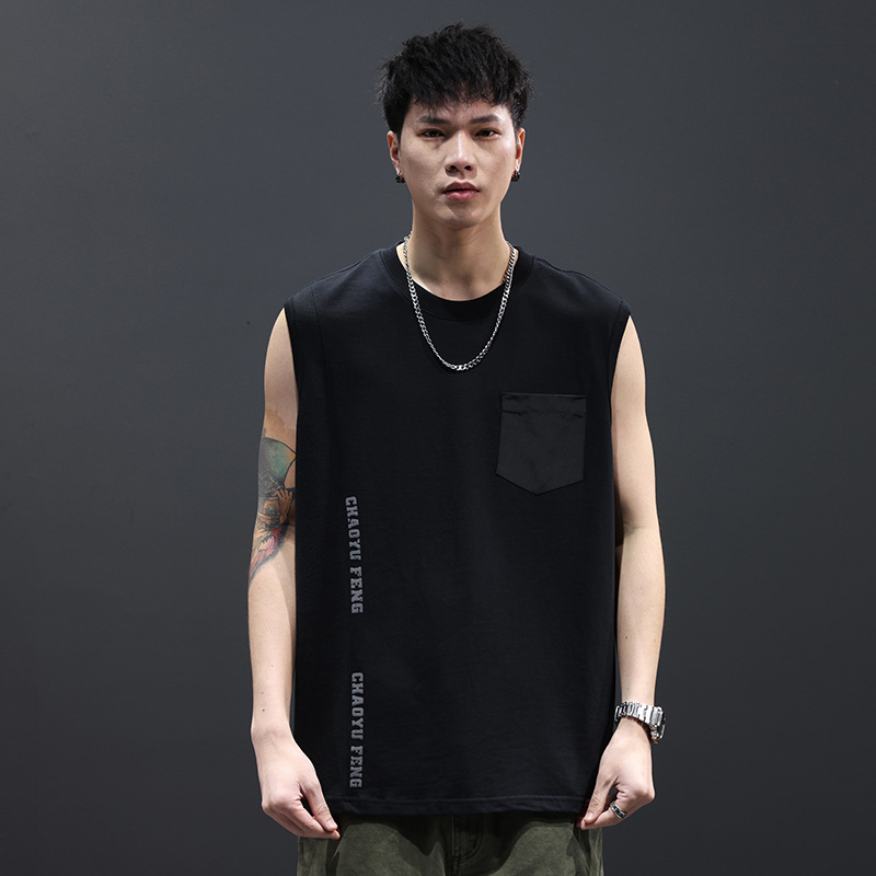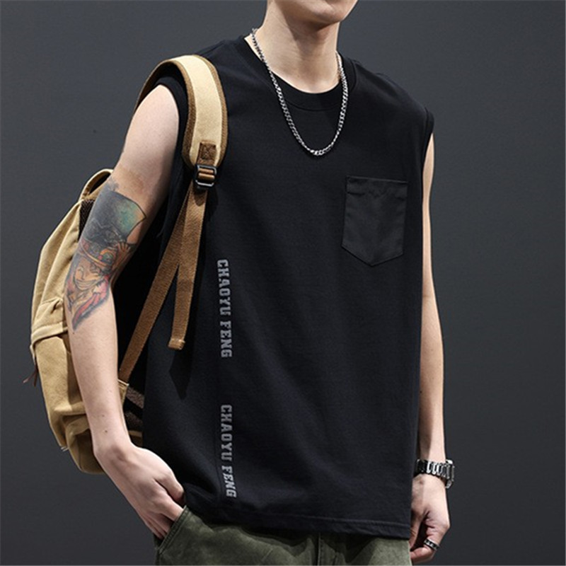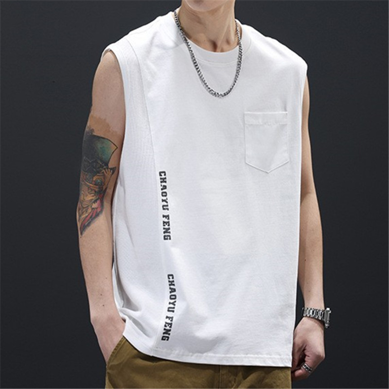 夏季新款痞帅健身纯棉运动背心男宽松大码潮流ins圆领坎肩无袖T恤