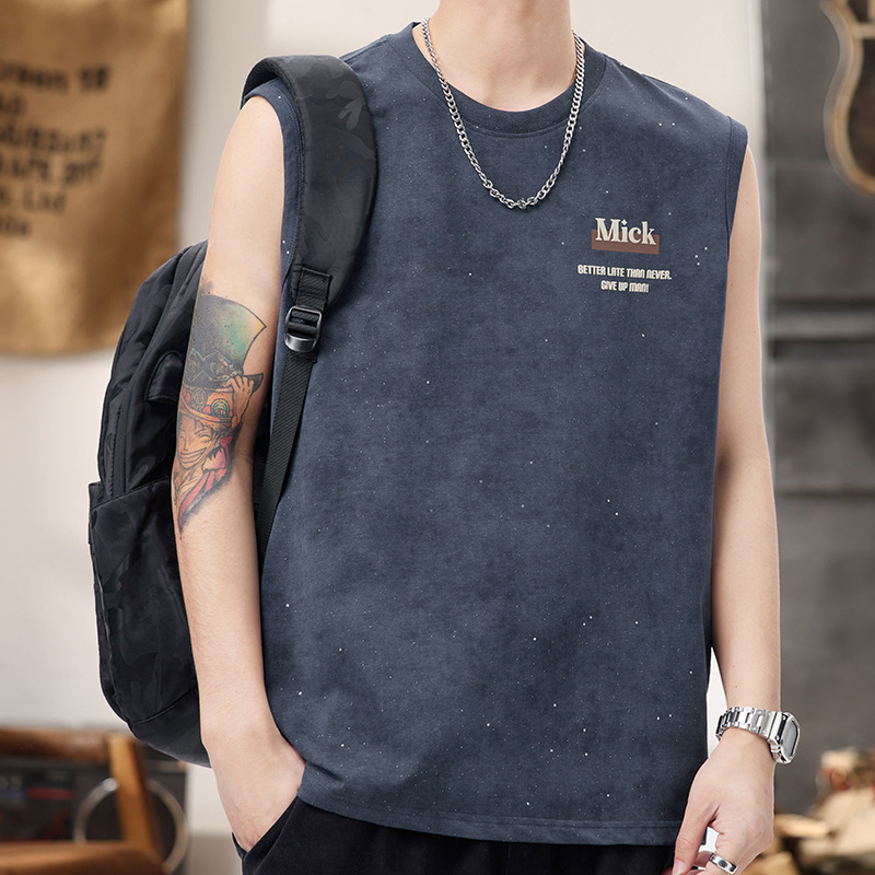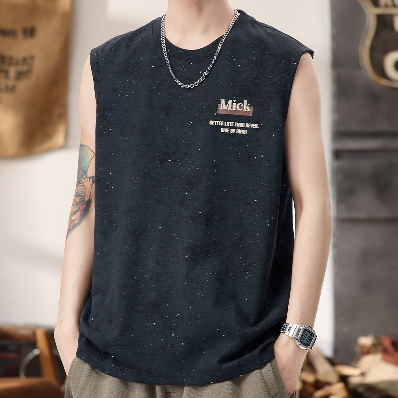 夏季新款满天星印花背心男薄款吸汗跨栏运动坎肩汗衫速干无袖T恤
