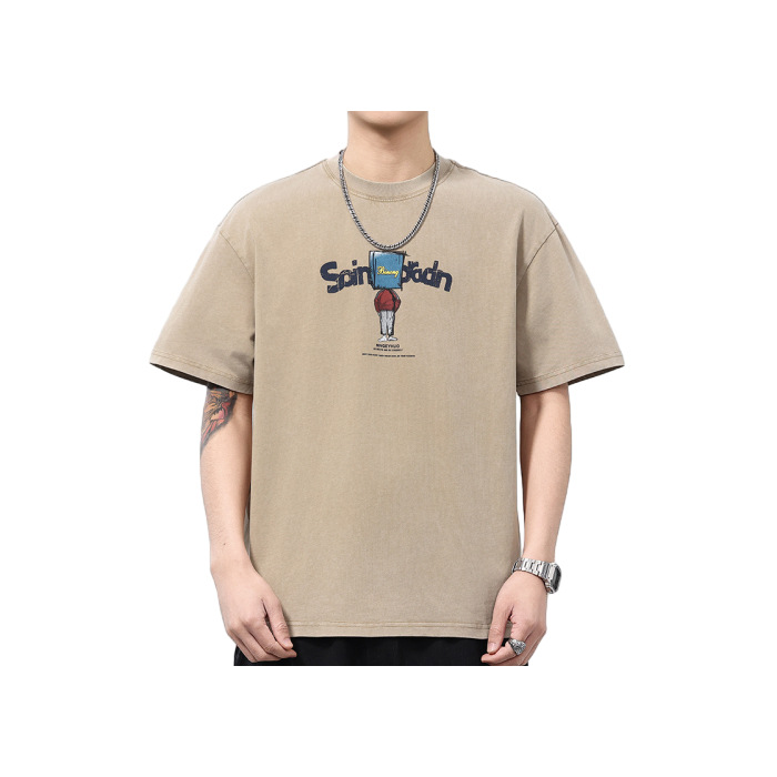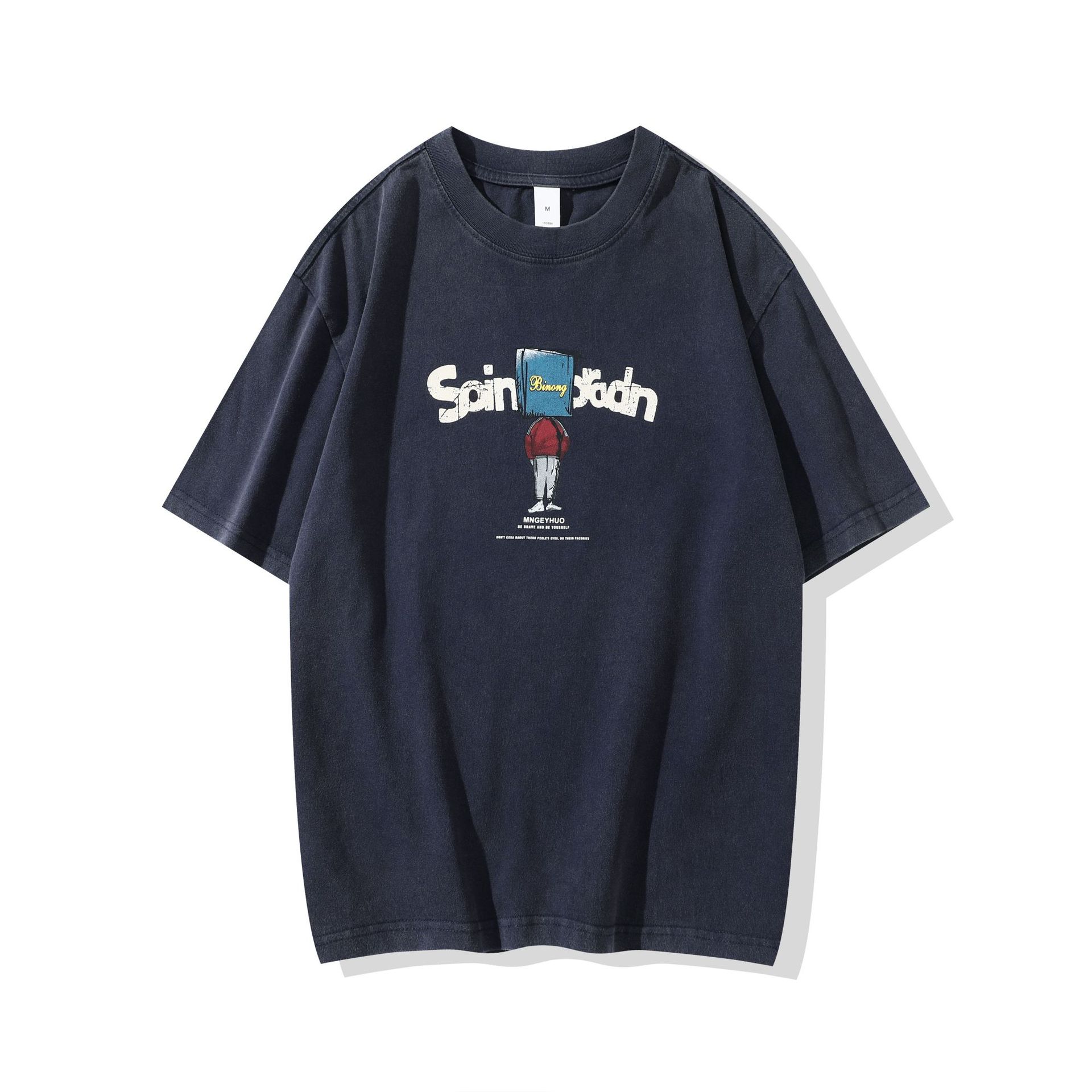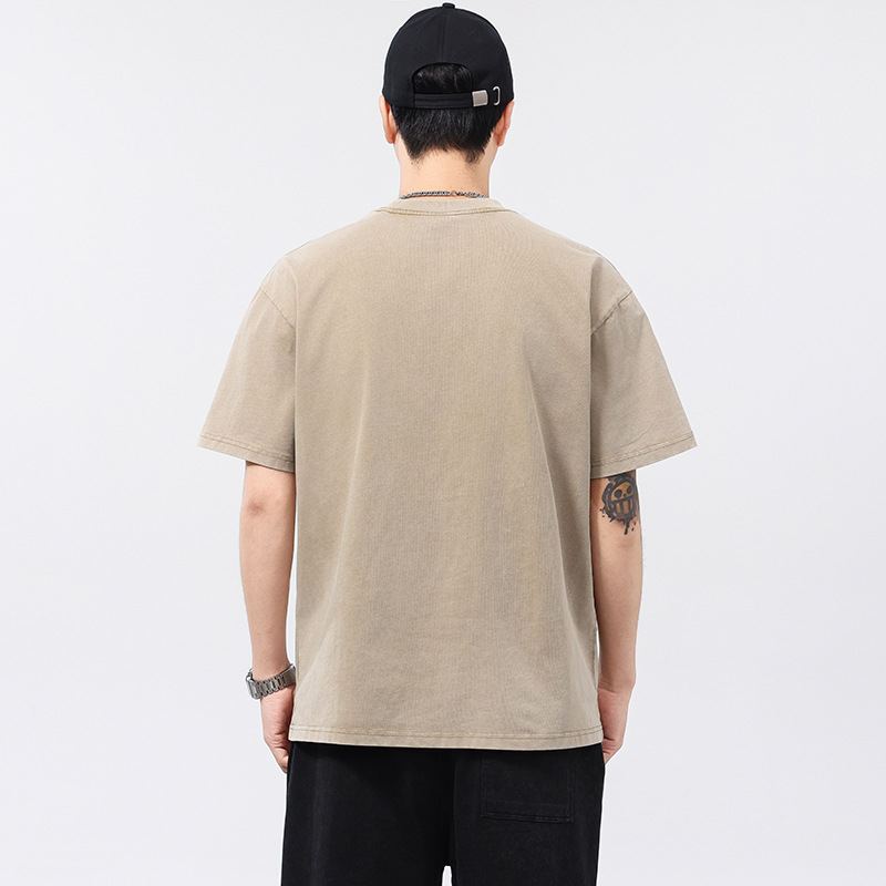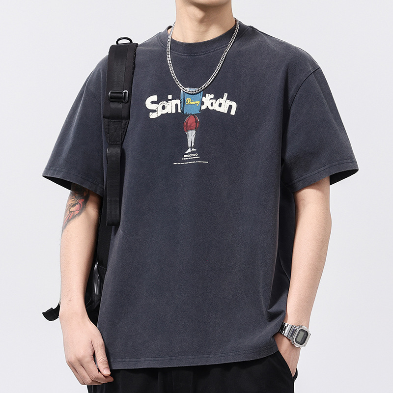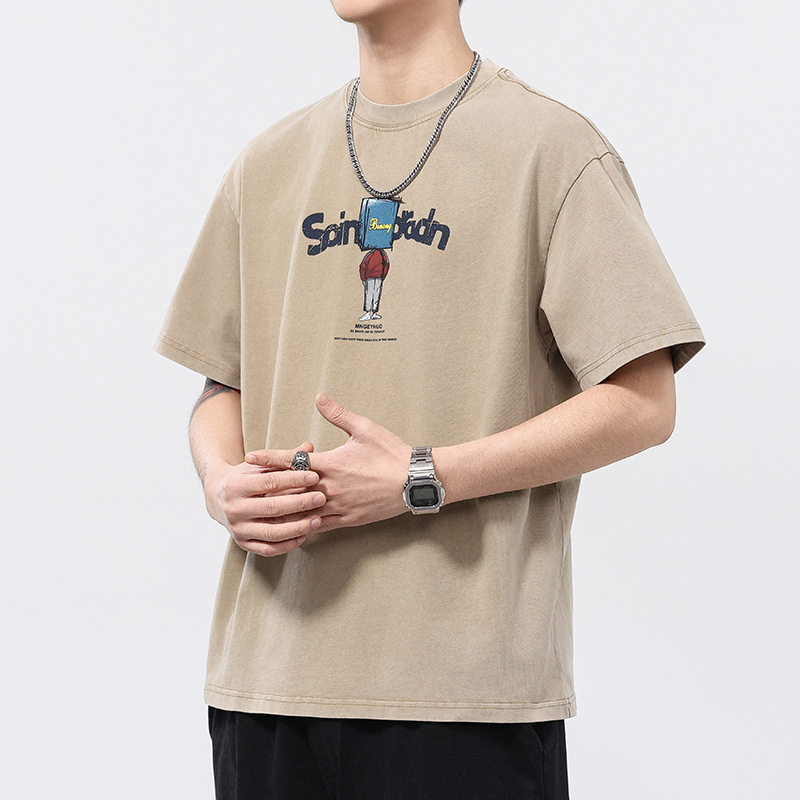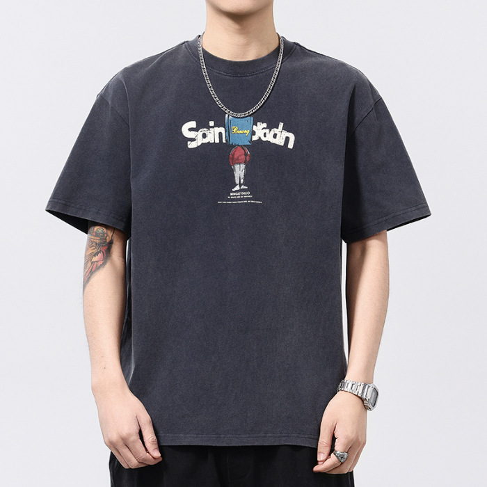 水洗做旧重磅纯棉t恤男士夏季美式潮牌印花大码宽松短袖打底上衣