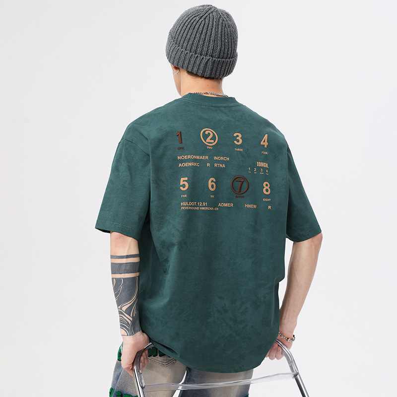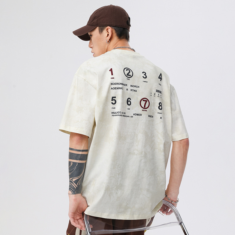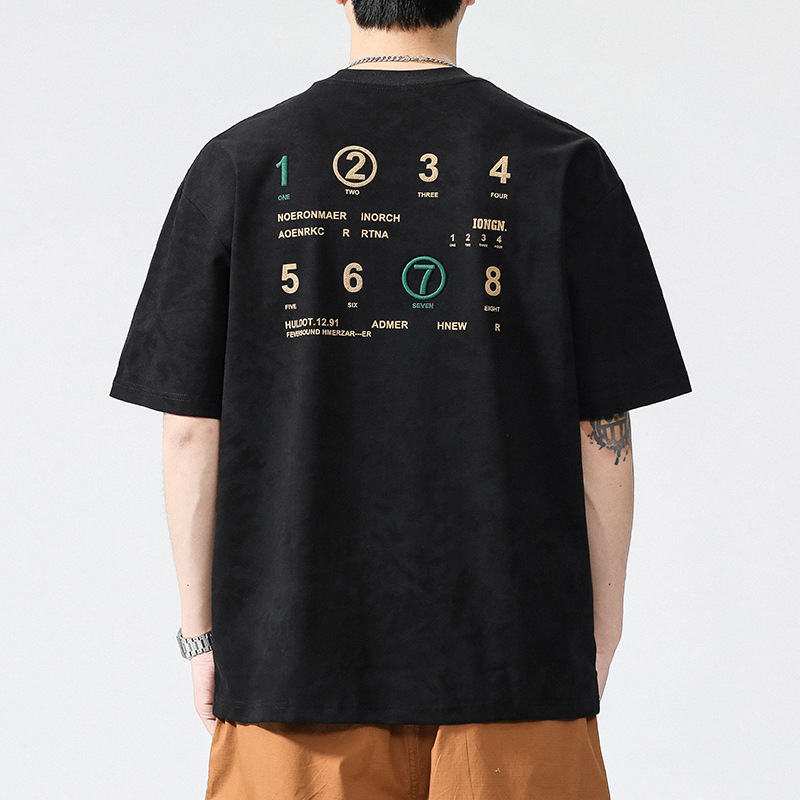 230g字母印花短袖t恤男夏季潮牌大码美式宽松半袖男生刺绣体恤衫