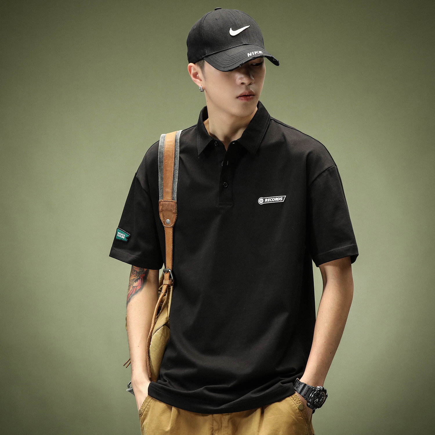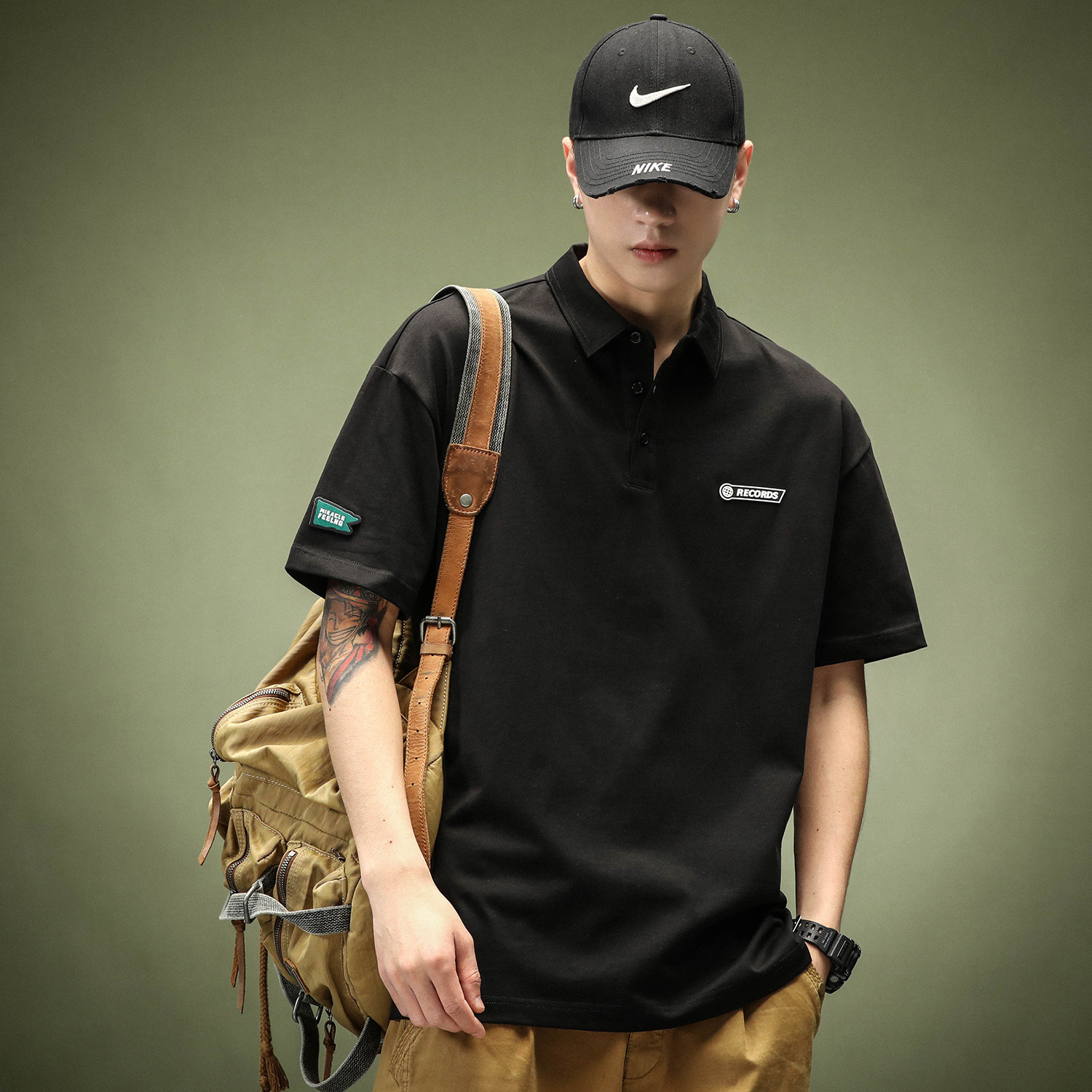 日系翻领polo衫短袖男痞帅百搭高级感纯棉t恤夏季宽松带领上衣潮