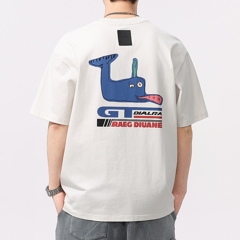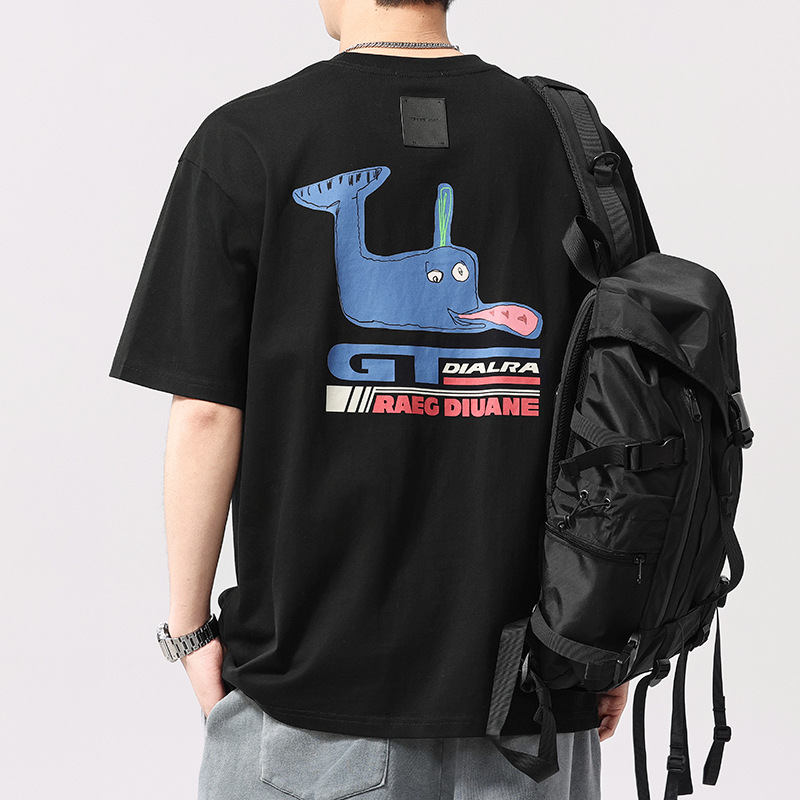 2025新款男装休闲半袖夏季体恤短袖宽松休闲鲸鱼印花潮流t恤夏款