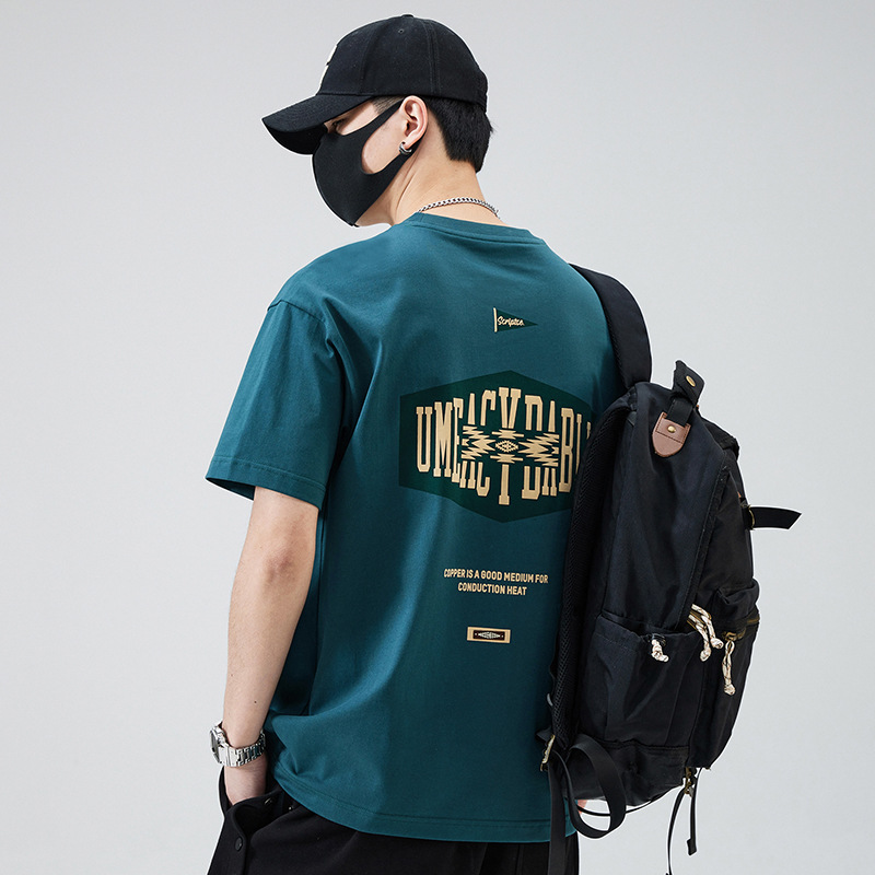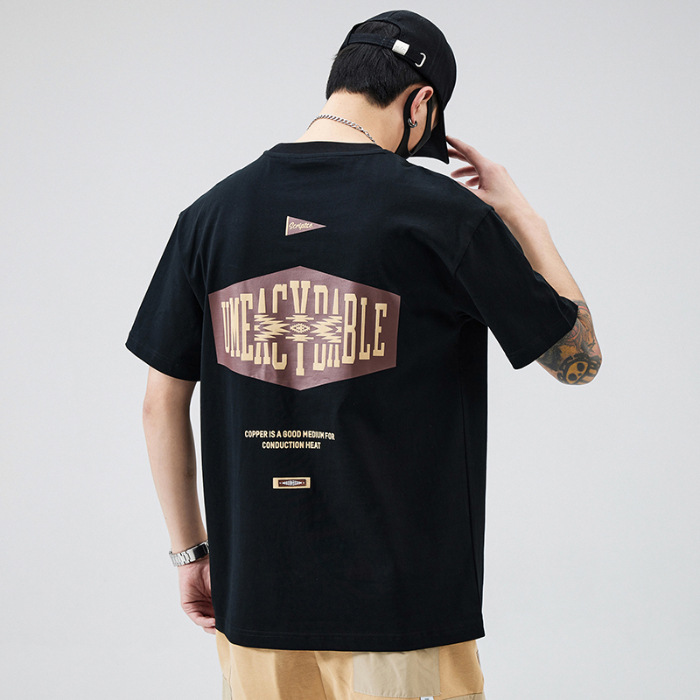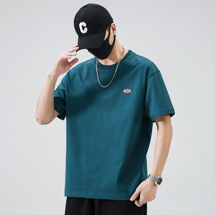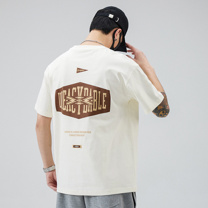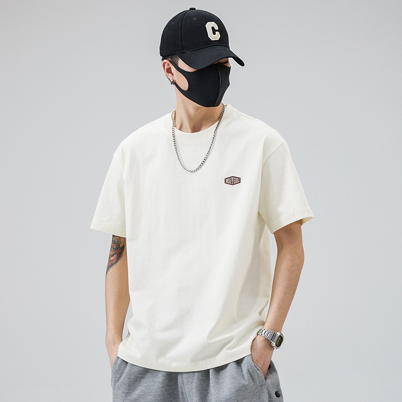 美式潮牌白色短袖t恤男士上衣夏季重磅纯棉半袖体恤宽松衣服