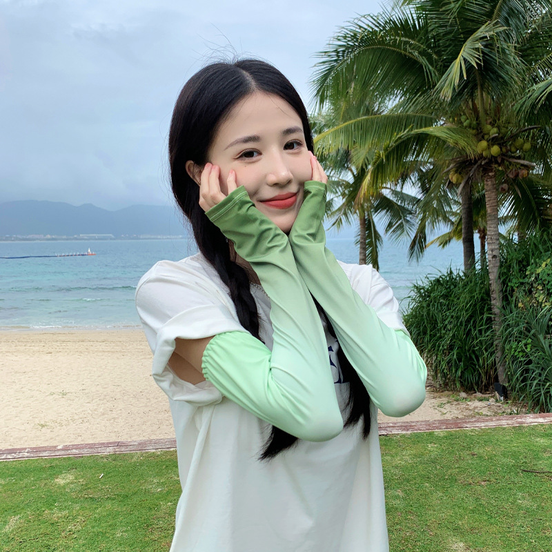 牛油果绿色渐变防晒冰袖女夏季薄款防紫外线袖套开车冰丝护臂手袖