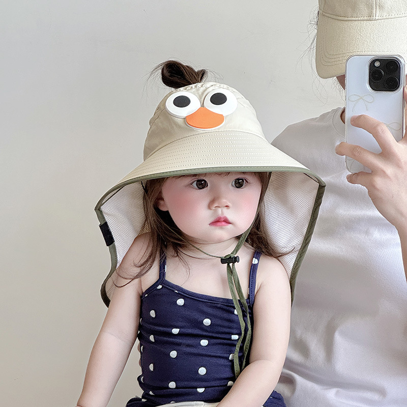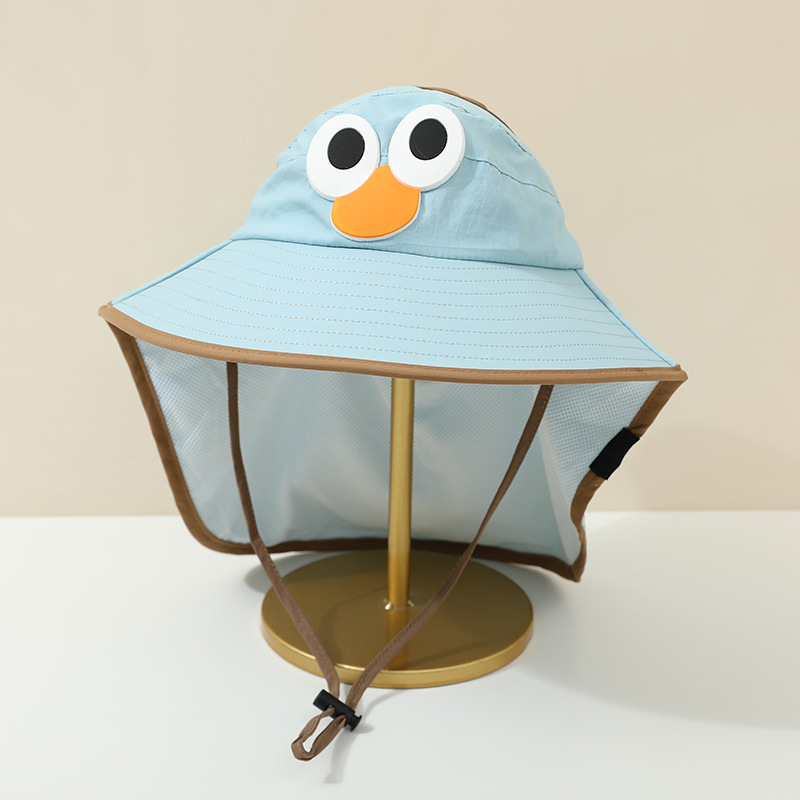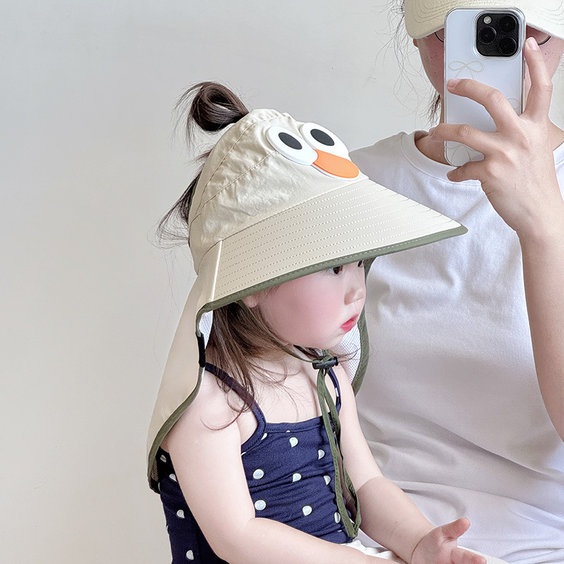 儿童帽子夏季薄款大帽檐遮阳防晒披肩空顶帽男女宝宝渔夫护脖帽潮