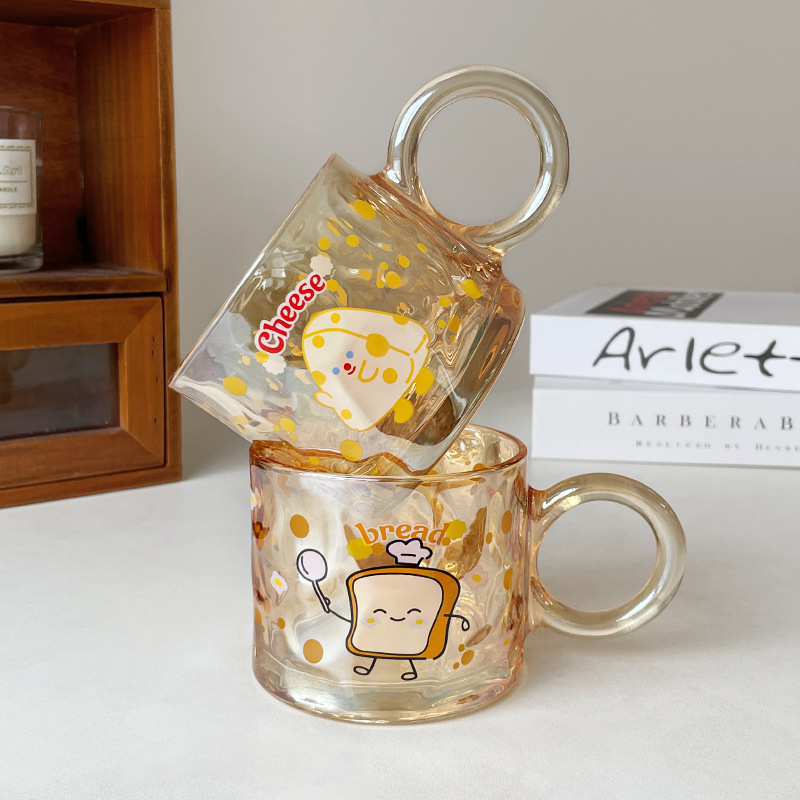 卡通玻璃杯ins大耳朵水杯隔热带把手咖啡杯高颜值宿舍家用牛奶杯