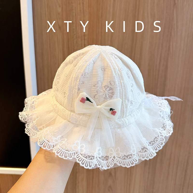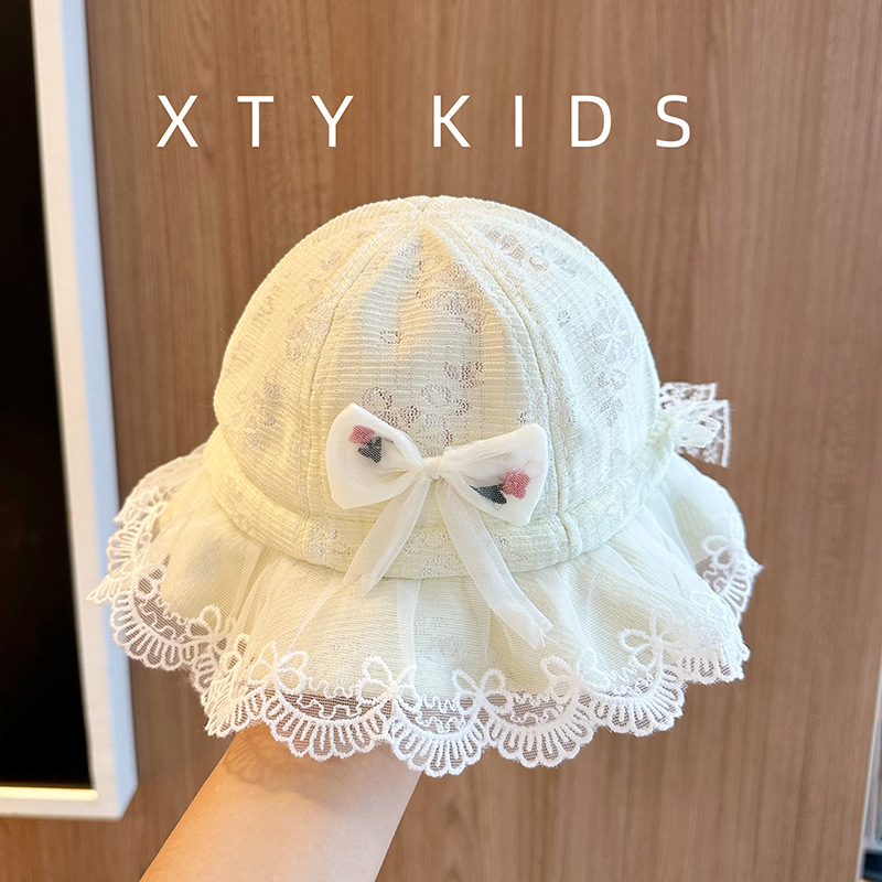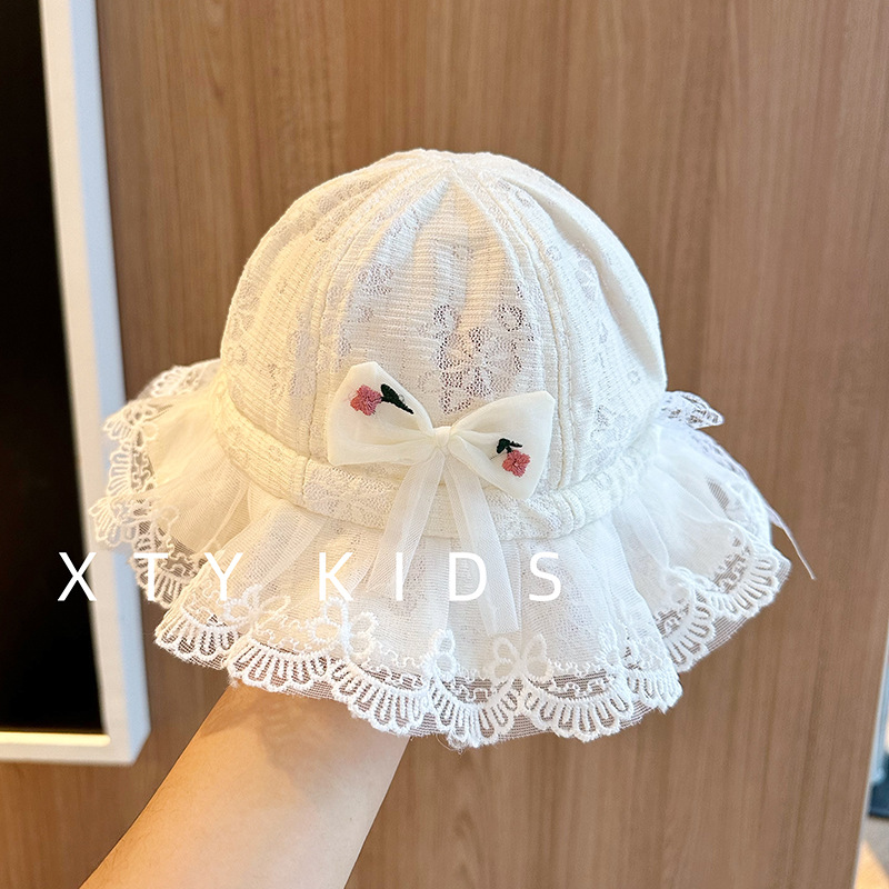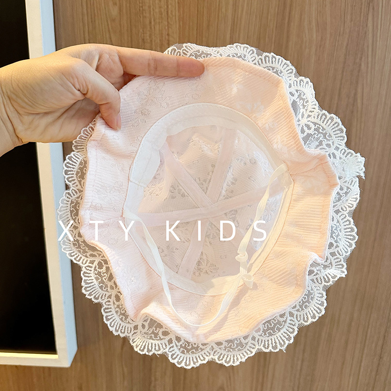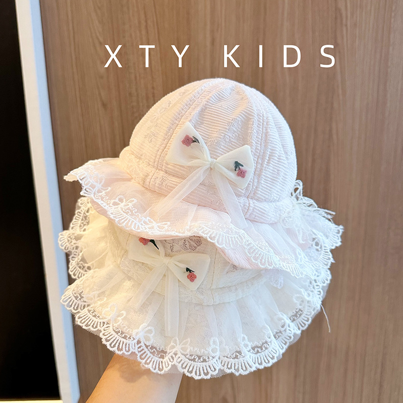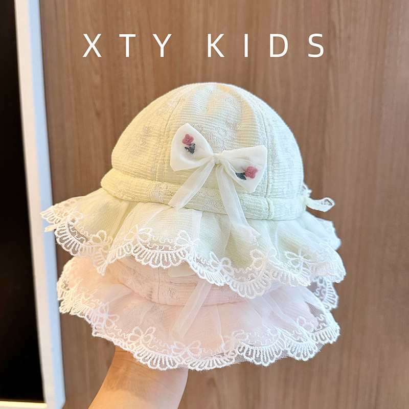 婴儿帽子夏季韩版渔夫帽可爱公主花边蝴蝶结洋气宝宝遮阳盆帽女童