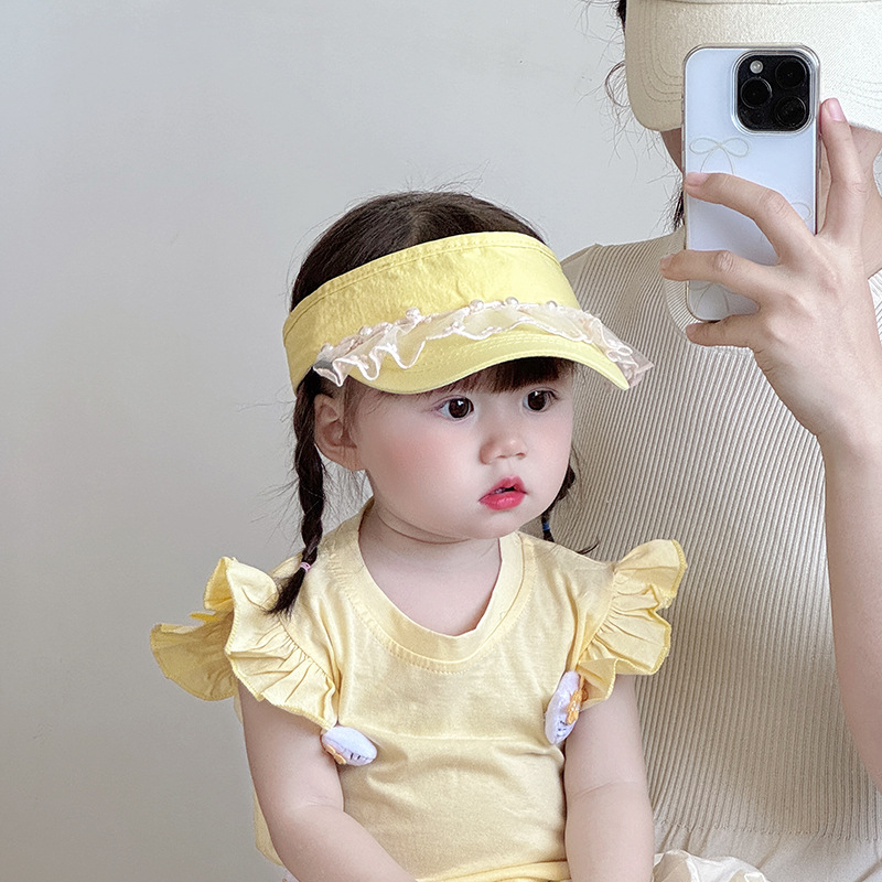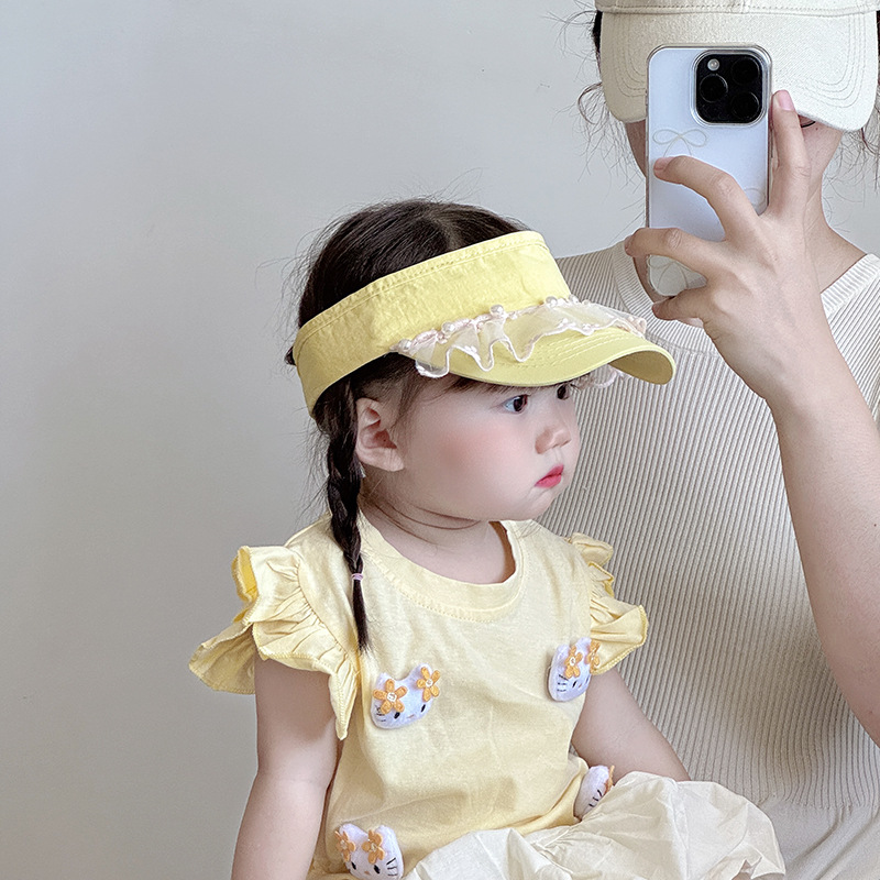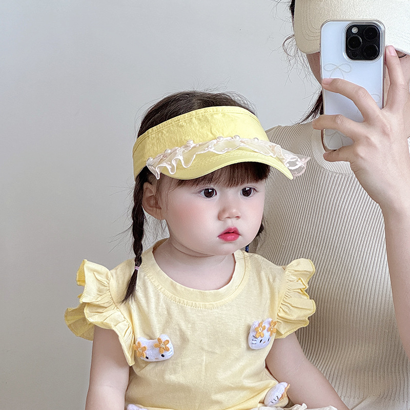 蕾丝珍珠空顶 黄+10个月-5岁(头围45-52cm)+有弹力