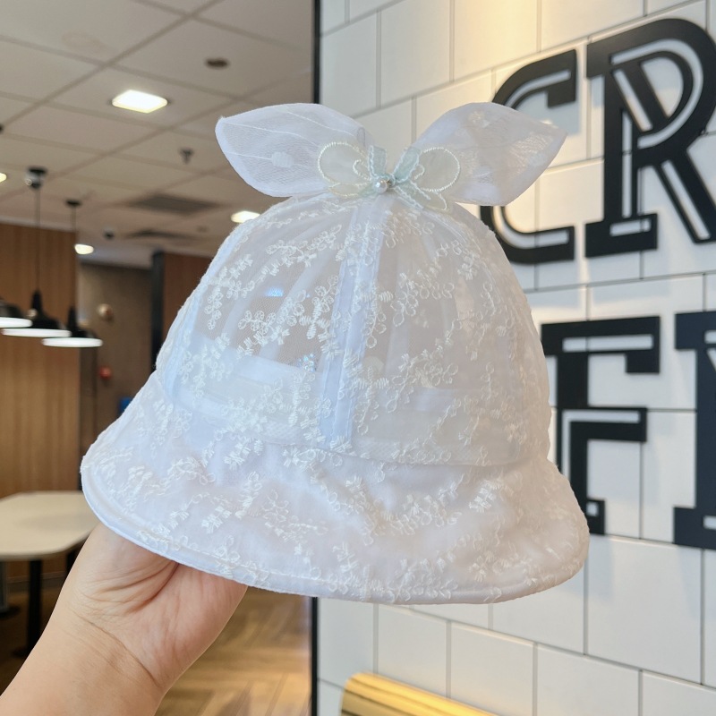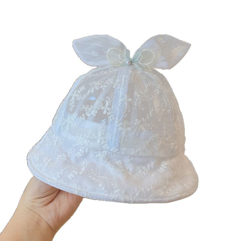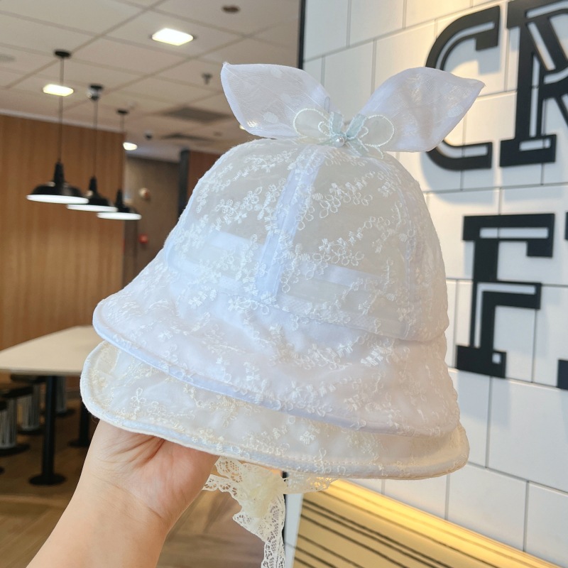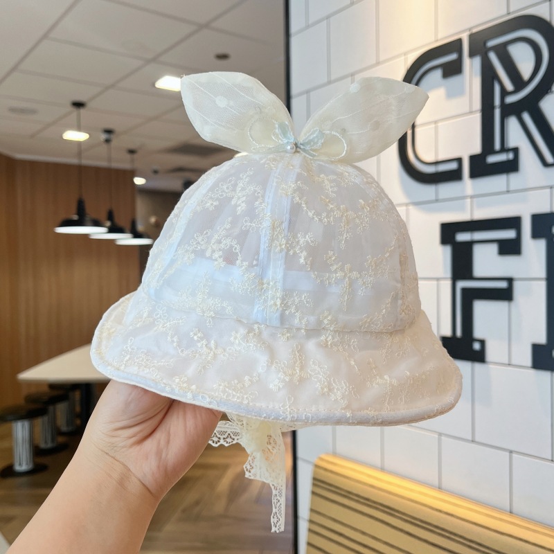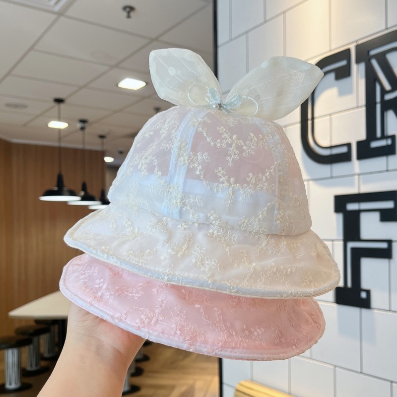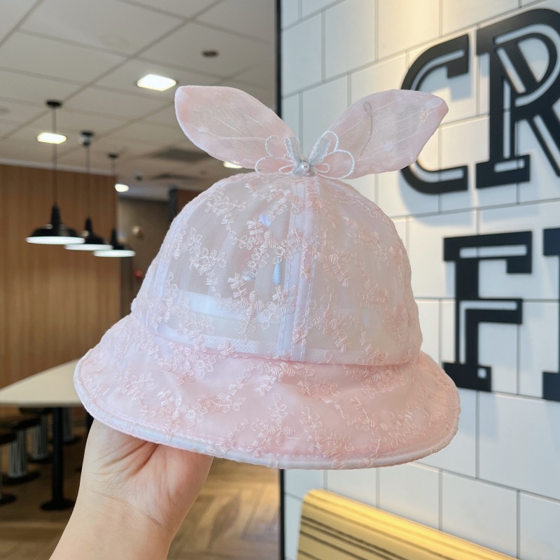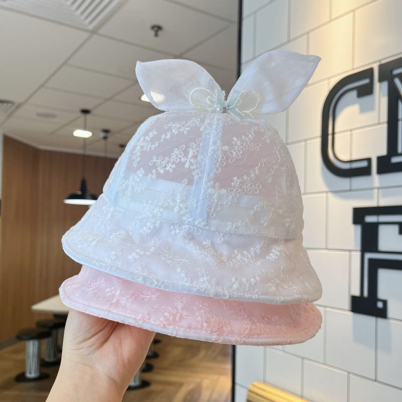 洋气网纱兔耳朵宝宝遮阳帽夏季大帽檐透气女童渔夫帽防晒婴儿帽子