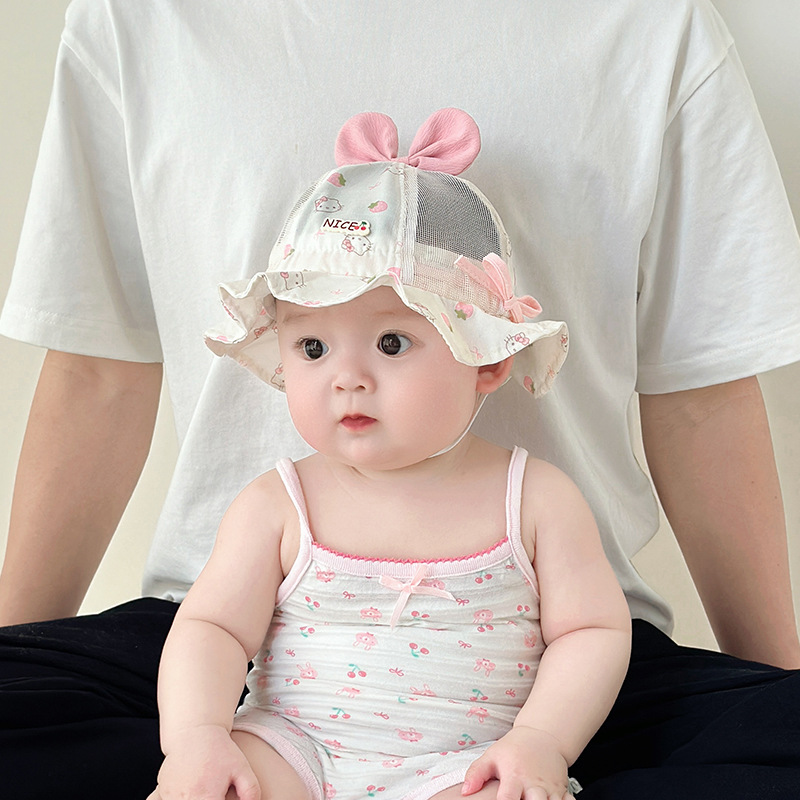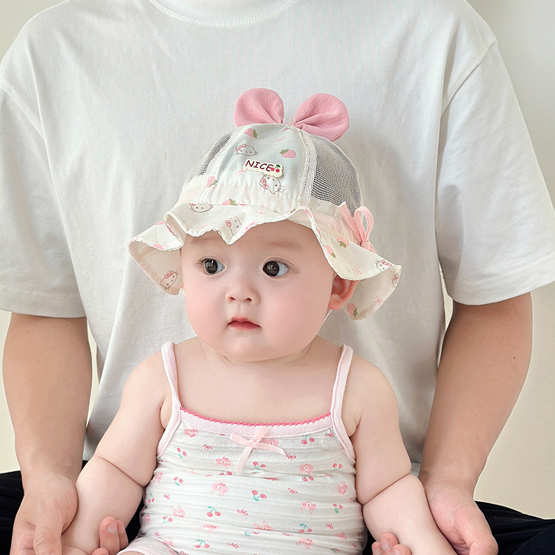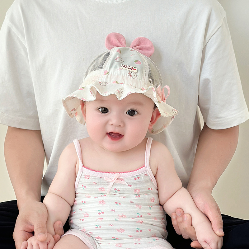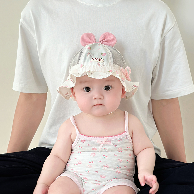 宝宝帽子春夏款渔夫帽透气网眼遮阳帽可爱婴幼儿出游防晒帽太阳帽