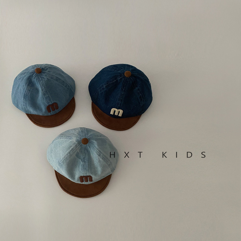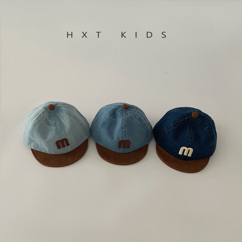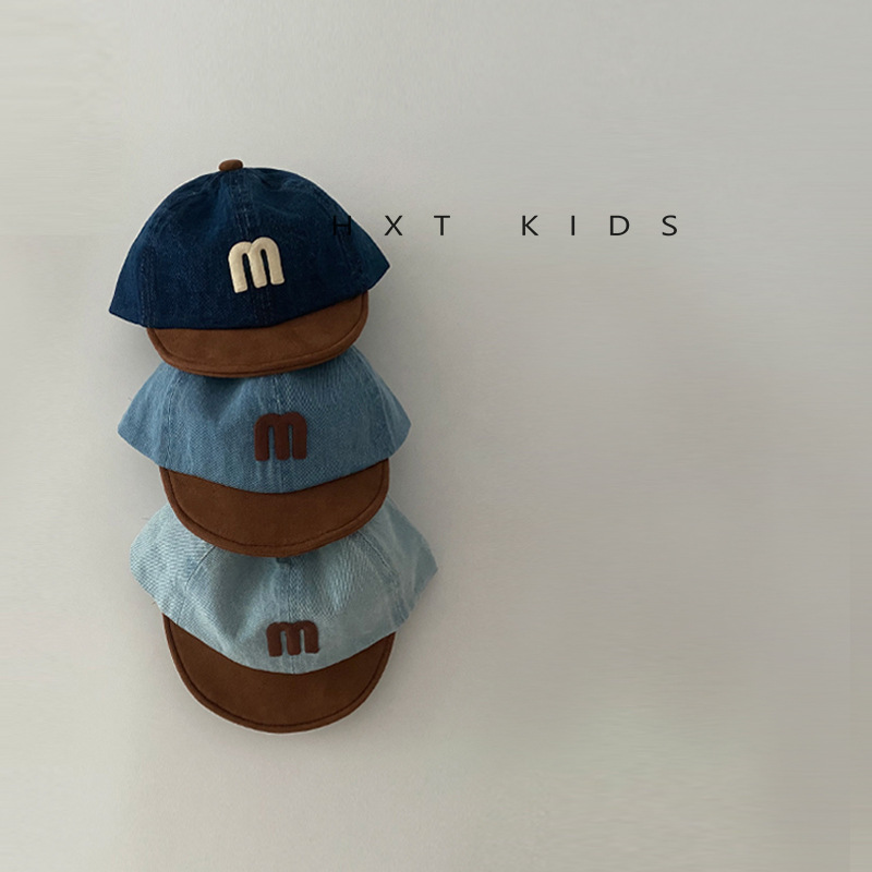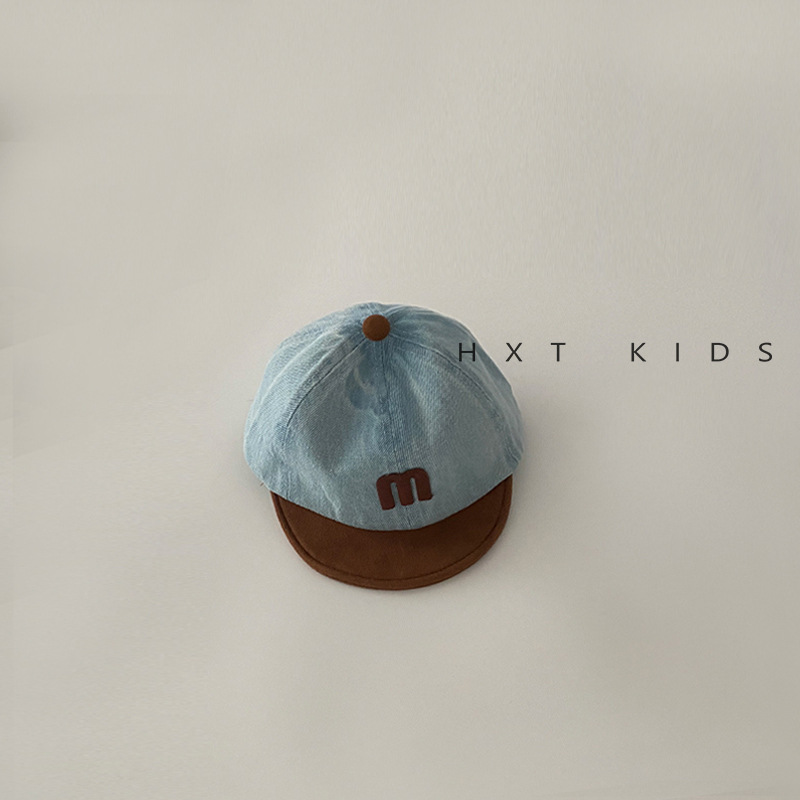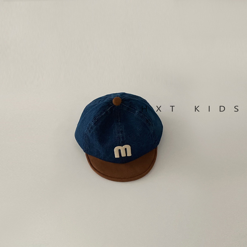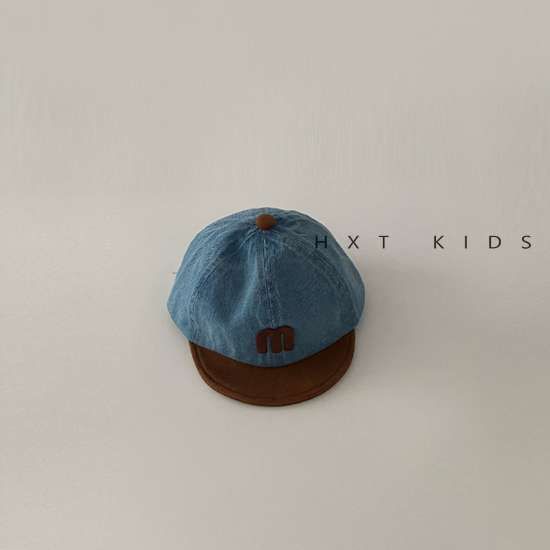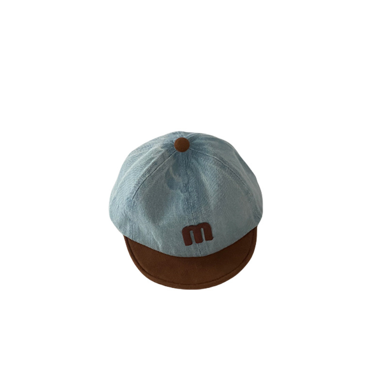 儿童短檐鸭舌帽春秋季拼色m字母洋气遮阳帽子婴幼儿宝宝棒球帽潮