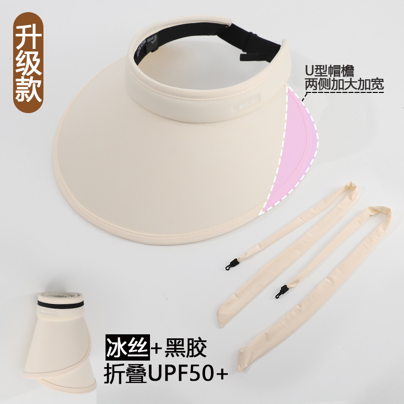 米白色-冰丝U型大帽檐-折叠款【送冰丝防风绳】+头围48~52cm/建议3~8岁+按头围购买